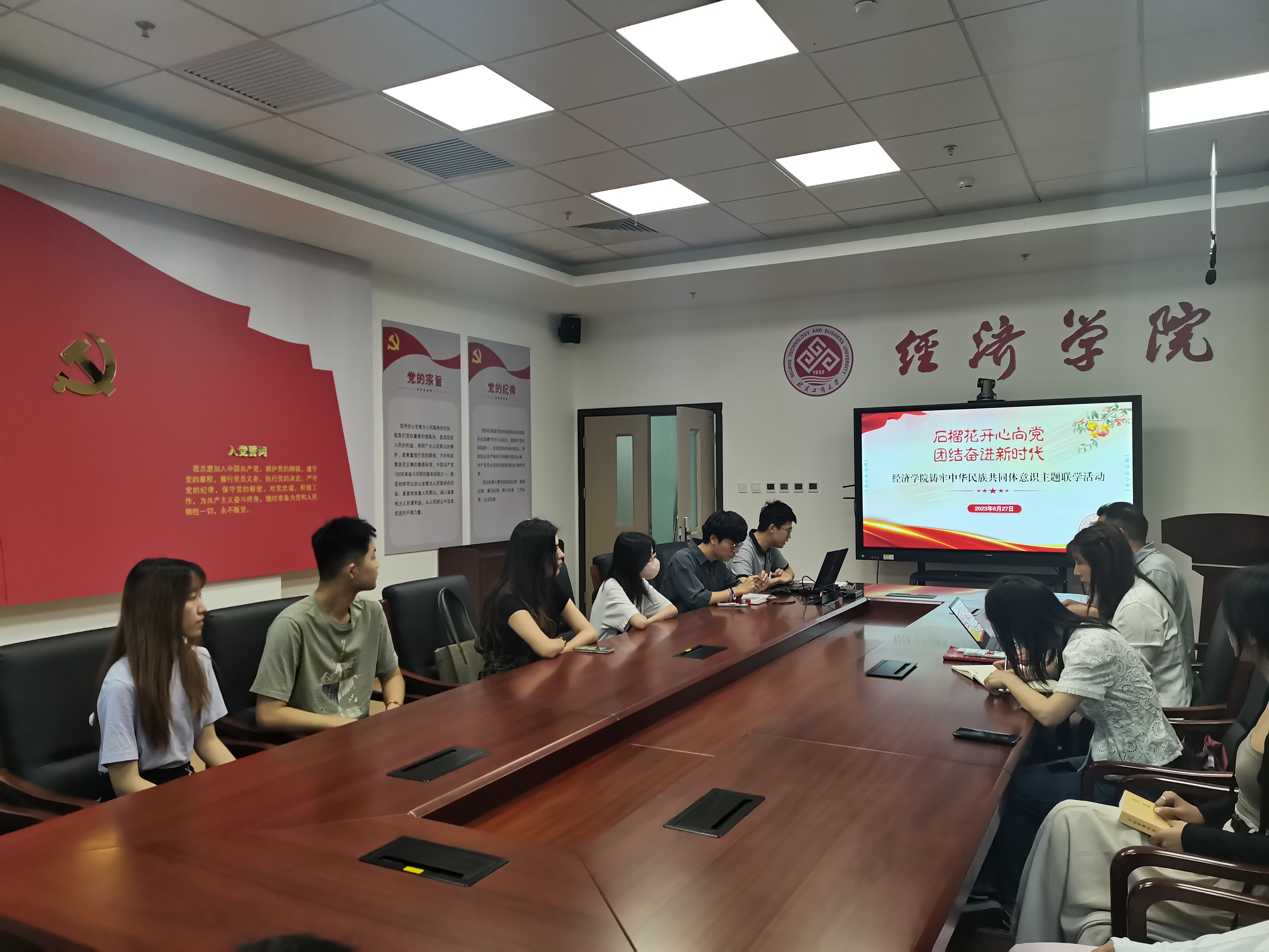 為深入學習宣傳貫徹黨的二十大精神,持續深化民族團結進步教育,促進各民族之間的交往交流交融,凝聚思想共識,共筑和諧奮進新篇章,6月27日,經濟學院學生黨支部讀書班聯合少數民族學生黨員,于學院學生黨員之家共同開展“石榴花開心向黨,團結奮進新時代”鑄牢中華民族共同體意識主題聯學活動。學生處少數民族專職輔導員阿力達、學院黨委副書記李艷春、 輔導員、學生黨支部書記、少數民族學生黨員、入黨積極分子和少數民族學生代表共20人參與。