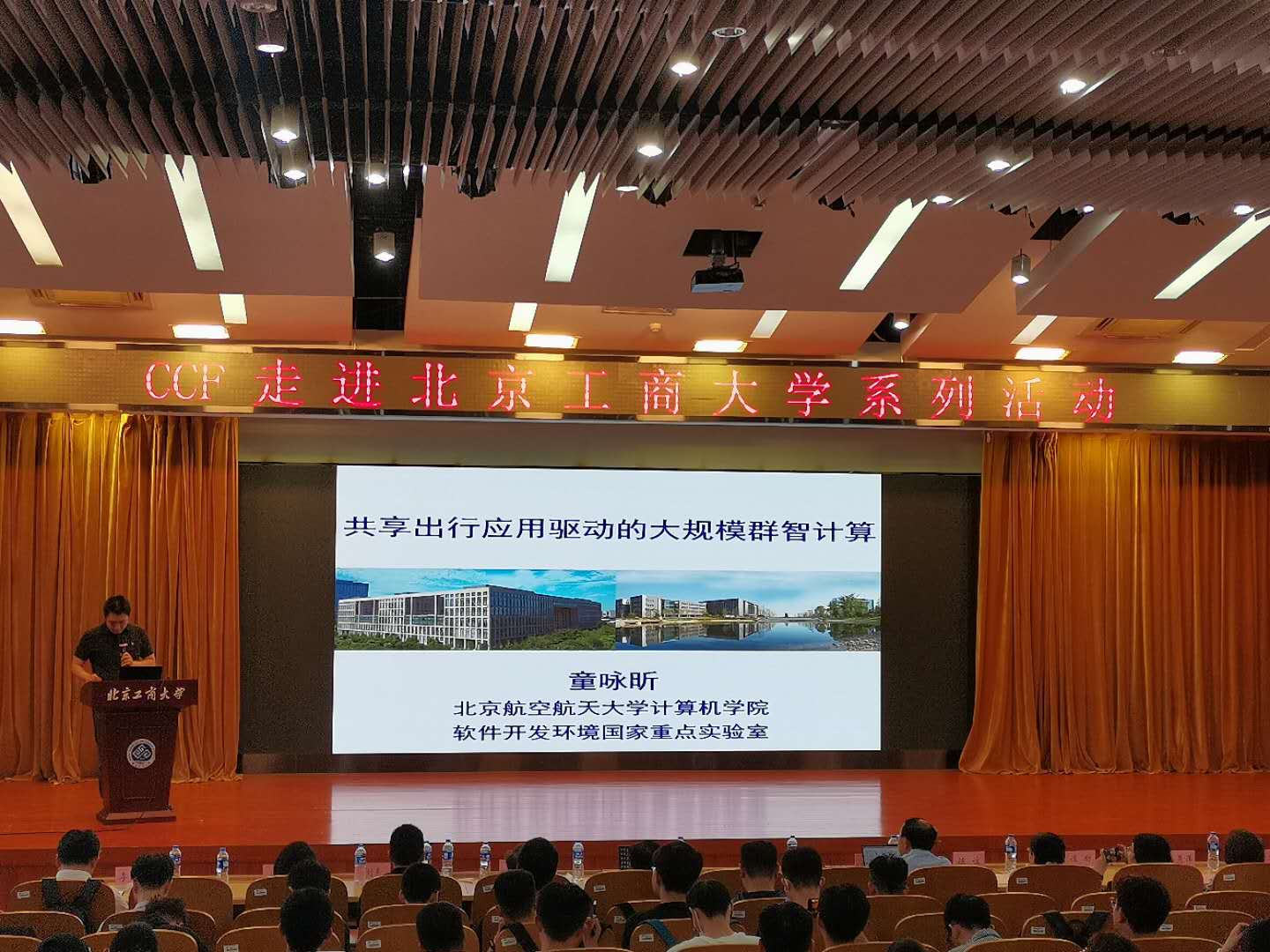 6月9日,中國計算機(jī)學(xué)會(CCF)北京工商大學(xué)學(xué)生分會CCF走進(jìn)北京工商大學(xué)系列活動在良鄉(xiāng)主校區(qū)舉行。活動邀請到CCF會員與分部工作委員會主任助理、國家自然科學(xué)基金優(yōu)秀青年基金獲得者、北京航空航天大學(xué)童詠昕教授,CCF學(xué)術(shù)工作委員會委員、國家優(yōu)秀青年基金獲得者、北京理工大學(xué)袁野教授,CCF會員與分部工作委員會執(zhí)行委員、計算機(jī)視覺專委會秘書長、北京郵電大學(xué)馬占宇教授到現(xiàn)場作專題報告。CCF會員部閆婉婷、劉亮,計算機(jī)學(xué)院黨委書記蔡強(qiáng)、執(zhí)行院長李海生、黨委副書記楊秀萍,副院長譚勵、劉瑞軍,CCF北京工商大學(xué)學(xué)生分會指導(dǎo)委員會主任陳誼及學(xué)院本科和研究生100余位CCF學(xué)生會員參加了本次活動。