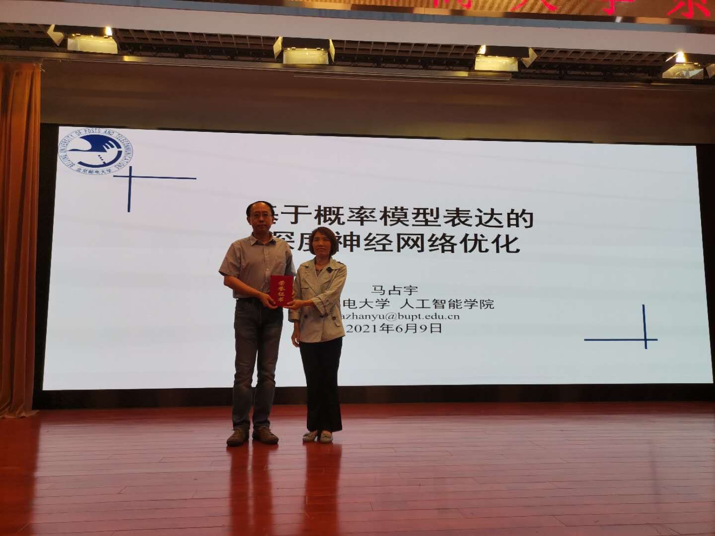 馬占宇教授作了題為“基于概率模型表達(dá)的深度神經(jīng)網(wǎng)絡(luò)優(yōu)化”的報告。馬占宇教授提到,深度神經(jīng)網(wǎng)絡(luò)由于其本身的結(jié)構(gòu)過于復(fù)雜、注意力功能機(jī)制不明確以及觀測數(shù)據(jù)不完備,使得其優(yōu)化方法的研究面臨著許多挑戰(zhàn)挑戰(zhàn)。他介紹了基于概率模型表達(dá)的深度神經(jīng)網(wǎng)絡(luò)優(yōu)化方法,通過基于非高斯先驗(yàn)的深度神經(jīng)網(wǎng)絡(luò)正則化框架來解決Dropout正則化引入系統(tǒng)偏差的難題,使用基于非高斯先驗(yàn)的深度神經(jīng)網(wǎng)絡(luò)注意力機(jī)制來增強(qiáng)模型的解釋性,有效的降低了網(wǎng)絡(luò)復(fù)雜度、較好的解釋了模型的注意力機(jī)制。
