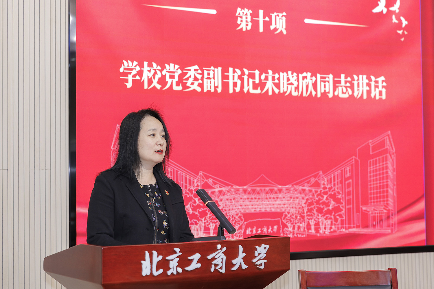 宋曉欣代表學校黨委對大會的召開表示熱烈的祝賀!她在講話中指出,法學院有著深厚的辦學底蘊和鮮明的辦學特色。五年來,學院黨委發揮黨建引領作用,在教育教學、人才培養、學科專業建設、科學研究、社會服務等方面取得了可喜成績,為學校發展作出了積極貢獻。她鼓勵師生黨員奮楫以航,主動融入學校“工商一體化”發展,主動對接國家與首都所需,全面推動學院事業高質量發展。她對學院黨委提出四點希望:一是充分發揮黨建引領作用,為學院事業高質量發展提供堅強政治保證和組織保障。二是落實立德樹人根本任務,培養符合新時代首都發展的卓越法律人才。三是堅持特色差異化發展,以更大作為融入和服務新時代首都發展。四是持之以恒推進全面從嚴治黨,營造良好的政治生態、學術生態、育人生態。