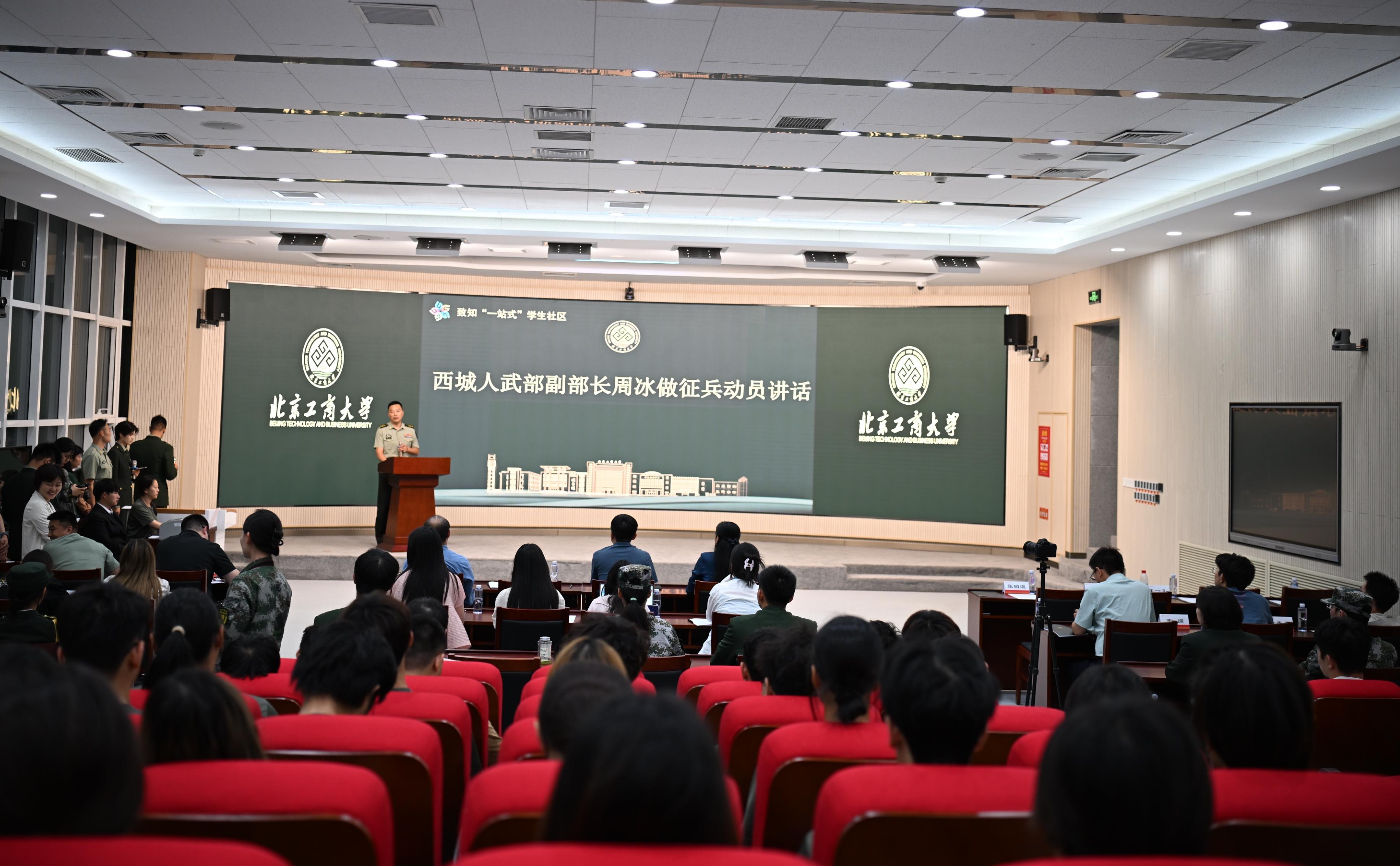 為紀(jì)念中國人民抗日戰(zhàn)爭暨世界反法西斯戰(zhàn)爭勝利80周年,增強(qiáng)青年學(xué)子參軍報(bào)國熱情,6月4日,在西城區(qū)人民武裝部的大力支持下,學(xué)校在良鄉(xiāng)校區(qū)舉辦西城區(qū)征兵宣講進(jìn)校園首場宣講會(huì)暨北京工商大學(xué)“愛我國防”主題演講比賽。西城區(qū)人民武裝部副部長周冰,北京中醫(yī)藥大學(xué)武裝部副部長趙小虎,我校武裝部部長鄭光、副部長黨浩,數(shù)學(xué)與統(tǒng)計(jì)學(xué)院黨委副書記畢平平以及百余名師生參加此次活動(dòng)。