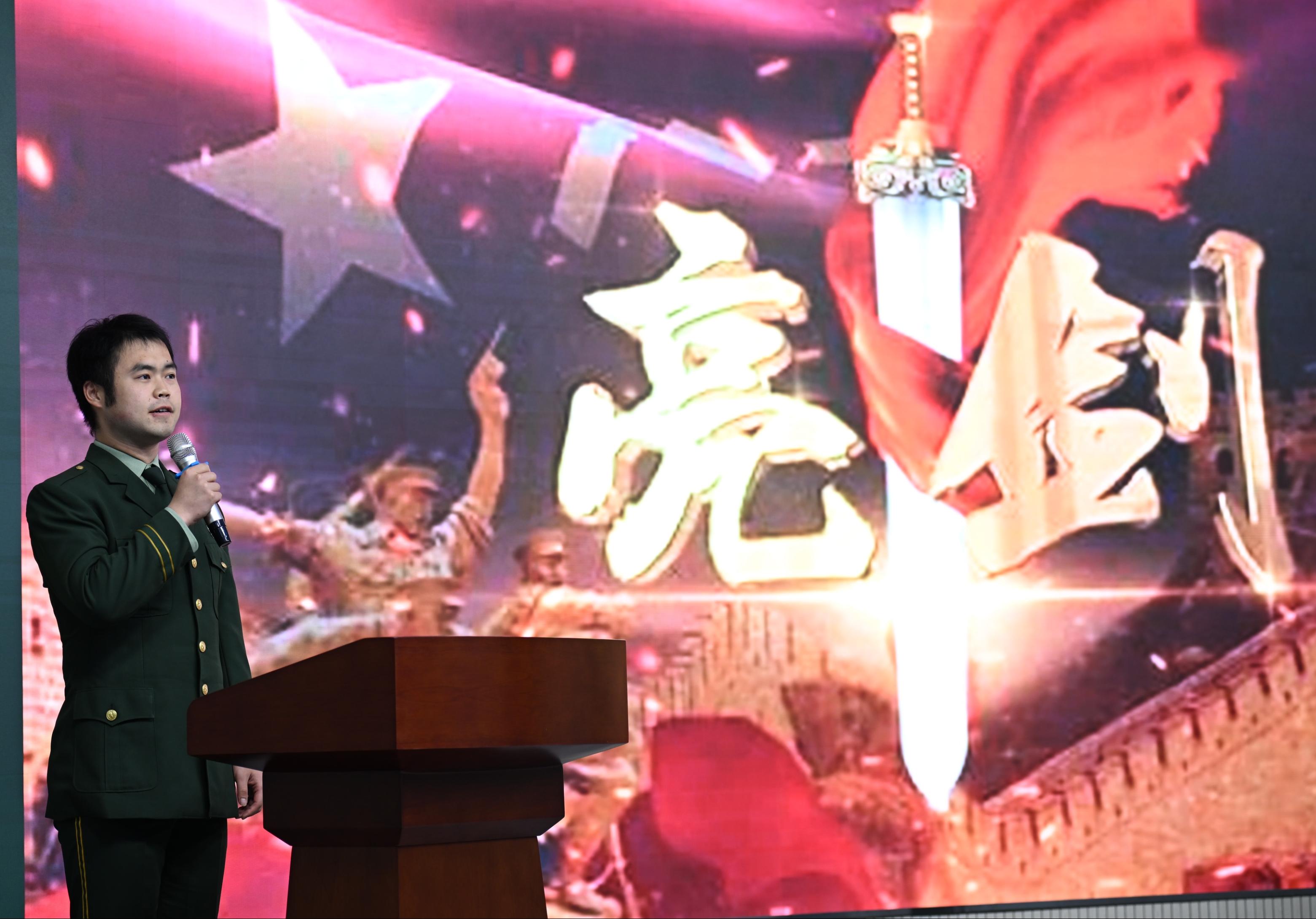 在“愛國國防”主題演講比賽環(huán)節(jié),退伍大學(xué)生郝樂之、李學(xué)慧和民兵連隊(duì)員趙馨圍繞“抗日英模故事”主題,分別為現(xiàn)場師生講述了楊靖宇、趙一曼和陳若克三位英模烈士的感人故事,號召青年學(xué)子傳承抗戰(zhàn)精神,向英烈學(xué)習(xí),矢志奮斗;退伍大學(xué)生王媛媛、民兵連隊(duì)員謝雨含和黃鍇程選擇“抗日歌曲傳頌”主題,帶領(lǐng)大家重溫《黃河大合唱》《義勇軍進(jìn)行曲》《松花江上》三首紅色歌曲的歷史背景和創(chuàng)作歷程,彰顯了中華民族不畏強(qiáng)敵、不懼風(fēng)險(xiǎn)、敢于斗爭、勇于勝利的風(fēng)骨和品質(zhì);退伍大學(xué)生劉華鑫、曹振方、趙耀祖和姜良正分別講述了“我的軍旅生涯”,他們用鮮活的軍旅故事,為大家?guī)砹怂麄儚拇髮W(xué)生成長為中國軍人的蛻變歷程,他們以自己的實(shí)際行動(dòng)踐行了“清澈的愛,只為中國”的青春誓言。