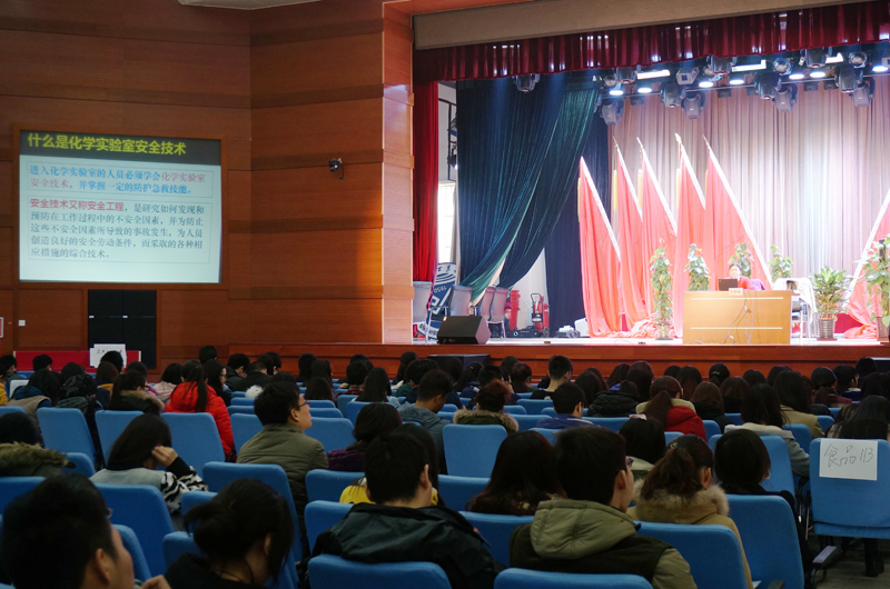 在化學實驗室中,化學品的安全使用非常重要,常常潛藏著爆炸、著火、中毒、灼傷等事故的危險性。如何防止事故發生以及掌握突發事件的自救技能,是每一個化學工作者必須具備的素質。為此,食品學院已連續三年對全體研究生新生進行《危險化學品與實驗安全》課程培訓,累計已有300余名研究生參加。學生通過課程考核后,簽署《食品學院學生安全實驗承諾書》,方準予進入實驗室。今年食品學院首次針對大四全體畢業生集中進行培訓。通過培訓和安全教育課程的開設,極大地提高了學生安全意識和自救能力,為實驗室安全無事故打下良好的基礎。