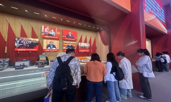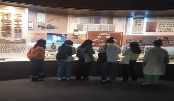 一部中國史,就是一部各民族交融匯聚成多元一體中華民族的歷史,就是各民族共同締造、發(fā)展、鞏固統(tǒng)一的偉大祖國的歷史。商學(xué)院師生先后參觀了“大一統(tǒng)”“大交融”“大團結(jié)”三個單元,三個主題是根據(jù)中華民族由古至今的發(fā)展時間線布展。通過一本本文物古籍,新生骨干們從歷史、文化、經(jīng)濟等多個角度,了解中華民族繁榮發(fā)展之路,上了一堂珍貴的思想政治教育課。