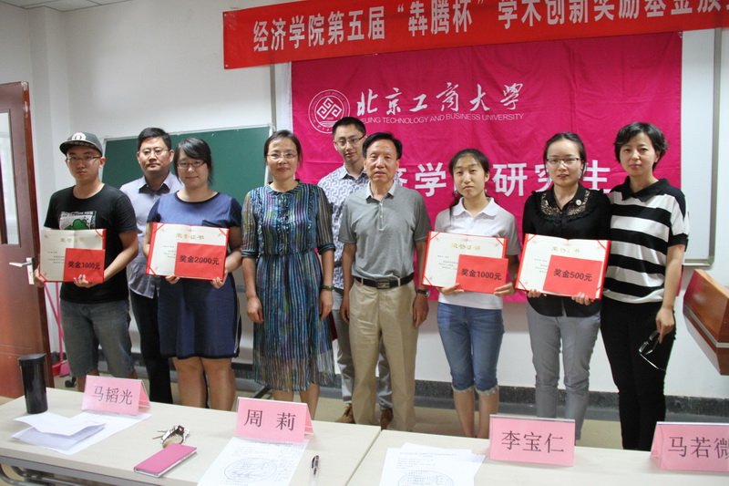 7月1日,經濟學院在阜成路校區舉辦第五屆“犇騰杯”學術創新獎勵基金頒獎儀式。儀式由經濟學院馬若微副院長主持,院長李寶仁,學院黨總支書記、研工組組長周莉及黨總支副書記馬韜光出席了本次頒獎。