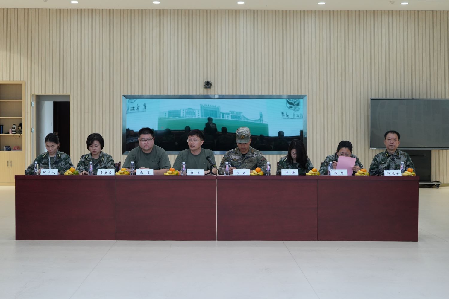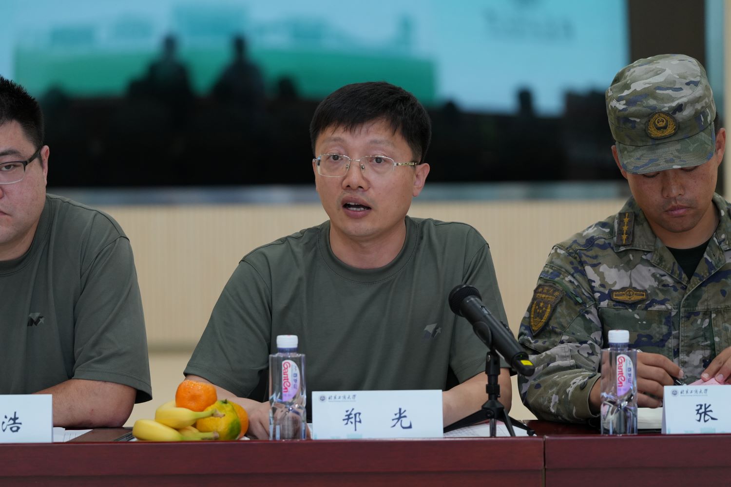 張進(jìn)向與會(huì)人員介紹了承訓(xùn)部隊(duì)的有關(guān)情況。他談到,武警北京市總隊(duì)執(zhí)勤第五支隊(duì)是一支擁有厚重歷史的光榮部隊(duì),是全軍十大英模之首張思德同志生前所在部隊(duì),是我校雙擁共建單位。這支部隊(duì)承擔(dān)著重要單位的安全保衛(wèi)工作,更積極參與校地雙擁共建,承擔(dān)了多所首都高校的軍訓(xùn)任務(wù),具有豐富的軍訓(xùn)工作經(jīng)驗(yàn)。