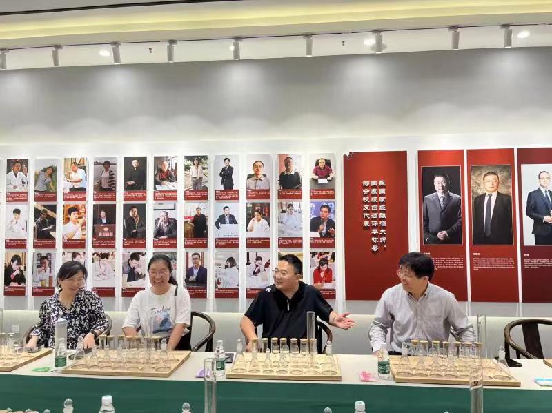 在白酒展示及品鑒室,鄭福平一行詳細聽取了中國白酒學院品酒室負責人李子健老師關于四川輕化工大學在白酒釀造領域的教學科研和服務社會等方面工作及取得的成績的介紹,并就如何結合雙方特色在課程教學、學科建設、人才培養等方面加強合作、推動雙方上水平、強特色、加速高質量發展等議題進行了深入交流座談。座談會上,中國白酒學院張利介紹了學院的教學科研及未來的發展方向,希望兩校進一步加強溝通和交流。鄭福平教授表示,四川輕化工大學擁有專業的釀酒中試基地以及智能化管理系統,為白酒釀造領域培養了大批行業人才,在白酒行業具有重要影響。兩校之間應發揮各自優勢,深化合作,共同進步。