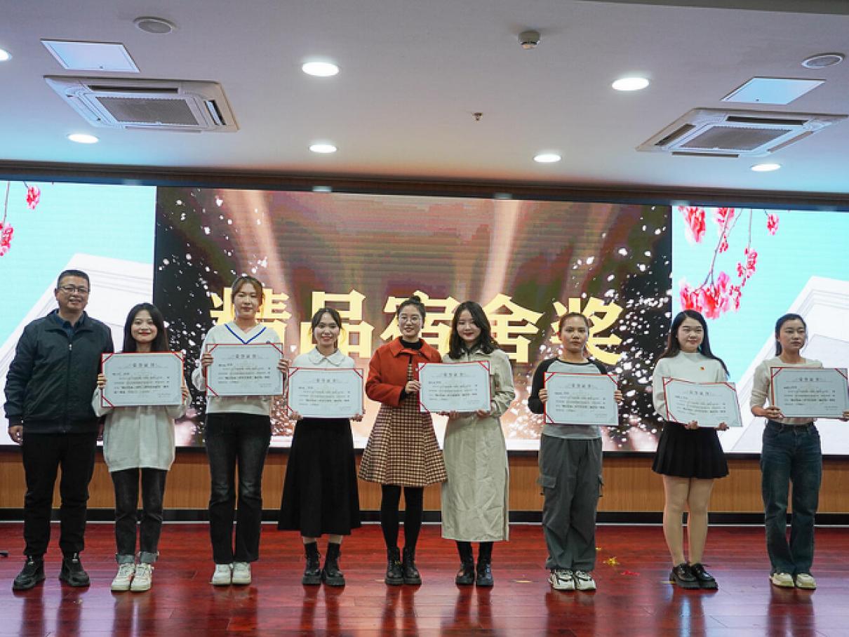 經(jīng)過現(xiàn)場激烈比拼,活動最終評選出精品宿舍獎暨校級一、二、三等獎等獎項。與會教師為獲獎宿舍頒獎。