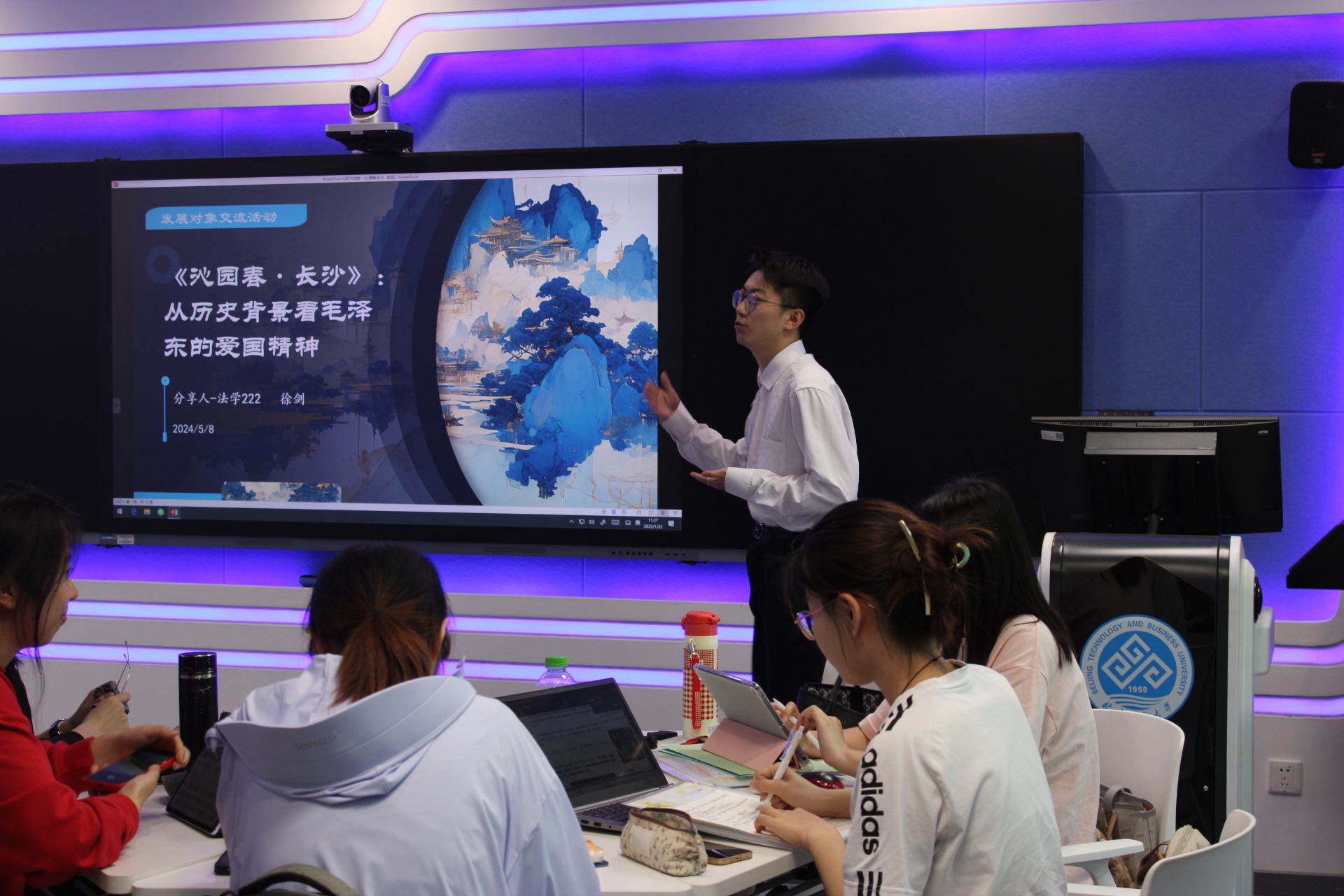 孫惟佳分享了對毛主席詩詞的學習情況,回憶了自己青年時參加社會實踐和學習毛澤東思想的情況。希望大家能從偉人的詩詞中找尋奮斗的力量,將青春之小我融入到中國式現代化的新征程中,不斷加強理論學習,積極從思想上、政治上和行動上向黨組織靠攏,早日成為光榮的中國共產黨員。