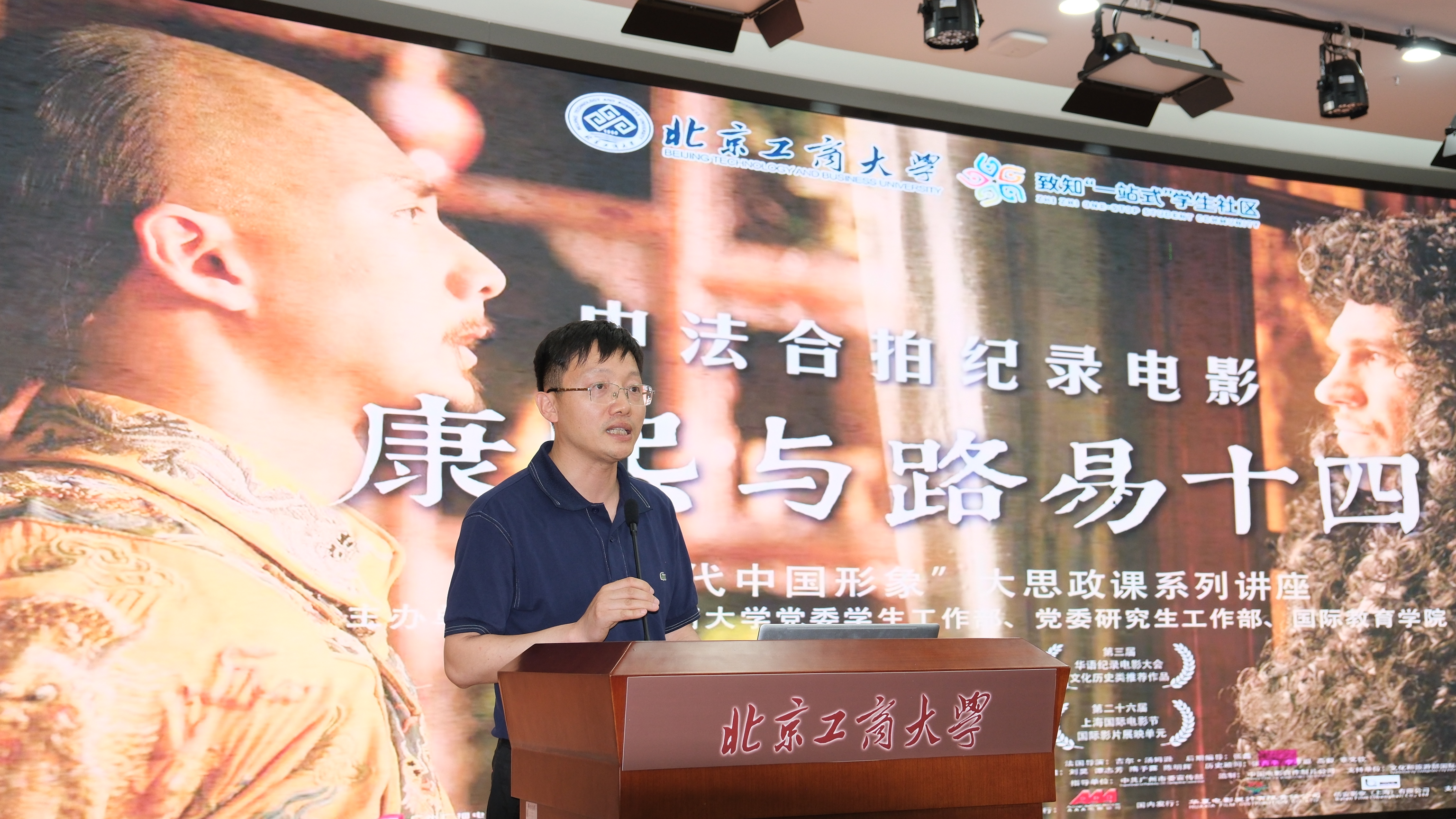 鄭光在致辭中,對《康熙與路易十四》紀錄電影制作團隊的到來表示熱烈的歡迎。他表示優秀的紀錄電影是中國電影史上的珍貴遺產,也是高校思想政治教育工作中的重要資源。我校“新時代中國形象”大思政課系列講座,始終致力于把社會上高水平育人資源引入校園,積極打造“家校社”協同育人共同體,滿足同學們的成長成才需求。《康熙與路易十四》紀錄電影制作團走進北工商,就是落實立德樹人根本任務,積極推動文化育人工作的重要活動。鄭部長希望同學們珍惜觀影交流機會,直觀地了解歷史、感受文化,領略中法文化的獨特魅力,拓寬國際視野。
