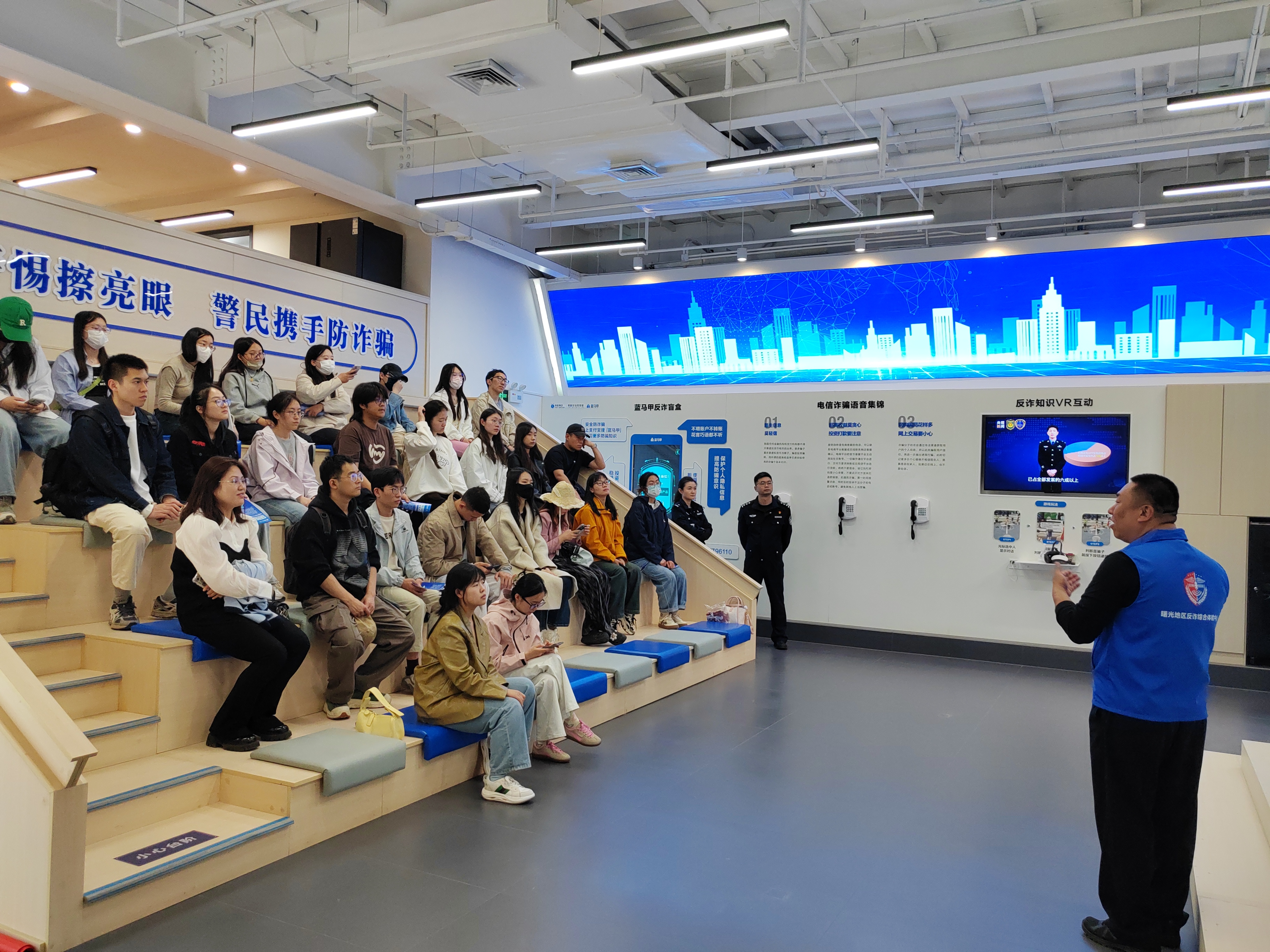 在第十個(gè)“4·15”全民國(guó)家安全教育日來(lái)臨之際,為切實(shí)提高研究生的反詐意識(shí)與風(fēng)險(xiǎn)防范能力,深化平安校園建設(shè),4月11日,學(xué)校黨委研究生工作部以開(kāi)展“研讀中國(guó)”實(shí)踐工程為契機(jī),聯(lián)合海淀公安分局高校內(nèi)保支隊(duì)、曙光派出所,組織來(lái)自7個(gè)學(xué)院的30余名碩士和博士研究生代表走進(jìn)北京市海淀區(qū)曙光地區(qū)反詐綜合體驗(yàn)中心,開(kāi)展了一場(chǎng)別開(kāi)生面的反詐教育實(shí)踐活動(dòng)。實(shí)踐活動(dòng)通過(guò)“案例剖析+技術(shù)體驗(yàn)+互動(dòng)研討”的沉浸式觀摩體驗(yàn)學(xué)習(xí)模式,為研究生們量身定制了一堂生動(dòng)的反詐教育課。