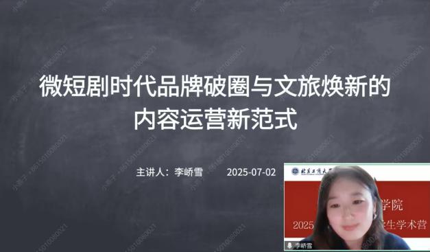 李嶠雪副教授帶來《微短劇時(shí)代品牌破圈與文旅煥新的內(nèi)容運(yùn)營新范式》,她結(jié)合當(dāng)前微短劇市場的火爆態(tài)勢,精準(zhǔn)分析了其內(nèi)容與傳播的核心特征,并以此為基礎(chǔ),重點(diǎn)探討了微短劇賦能文旅品牌破圈升級(jí)的創(chuàng)新模式及其對其他行業(yè)的啟示價(jià)值,揭示了新媒介形態(tài)下的內(nèi)容運(yùn)營新邏輯。