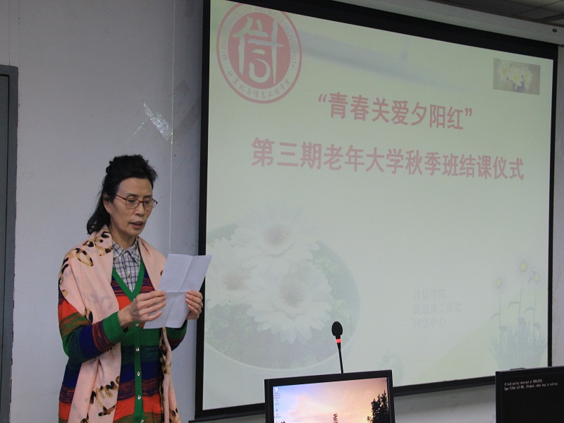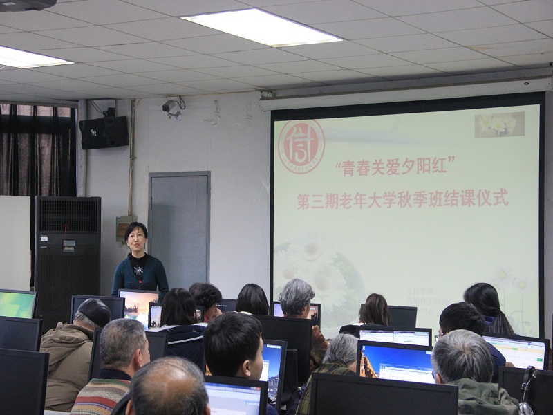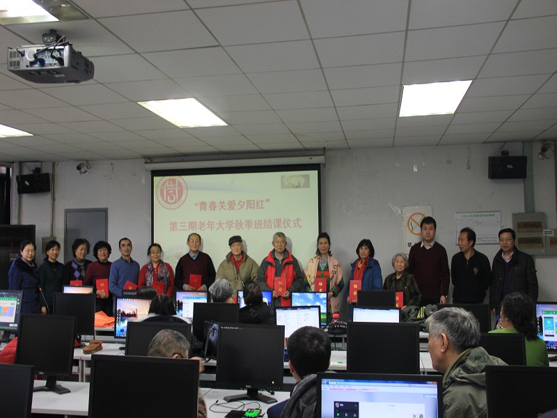 12月16日,學校“青春關愛夕陽紅”離退休教職工計算機培訓班(老年大學2015年秋季班)結課儀式在阜成路校區召開。離退休工作處副處長王紅英、計信學院領導陳誼、蔡強、張凱偉、劉新亮及學校離退休教師、學生講師和助教們參加了此次結課儀式。
