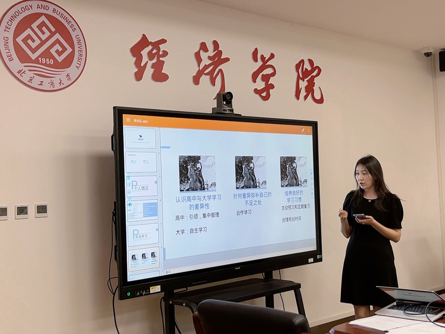 來自貿經212班的少數民族學生代表熱烏扎·奴平達爾同學,是新疆西藏籍少數民族特等獎學金獲得者,學年平均績點4.13,她結合自身經歷,分享了優秀學習經驗與學業規劃感悟。PPT中,她以“差異定位分析”“合作學習法”“習慣養成訓練”為例,詳細拆解了如何利用合作學習提升效率、通過系統性總結攻克難點、借助網絡化工具構建知識體系。