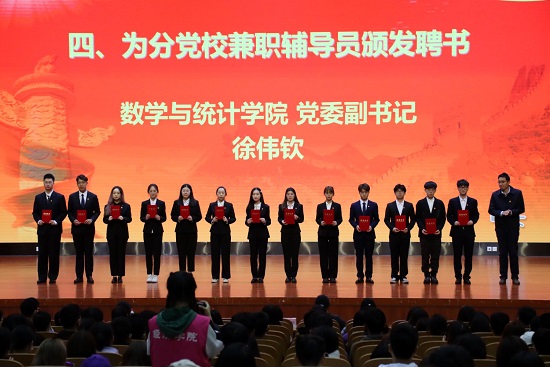 數學與統計學院黨委副書記徐偉欽為分黨校兼職輔導員頒發聘書。