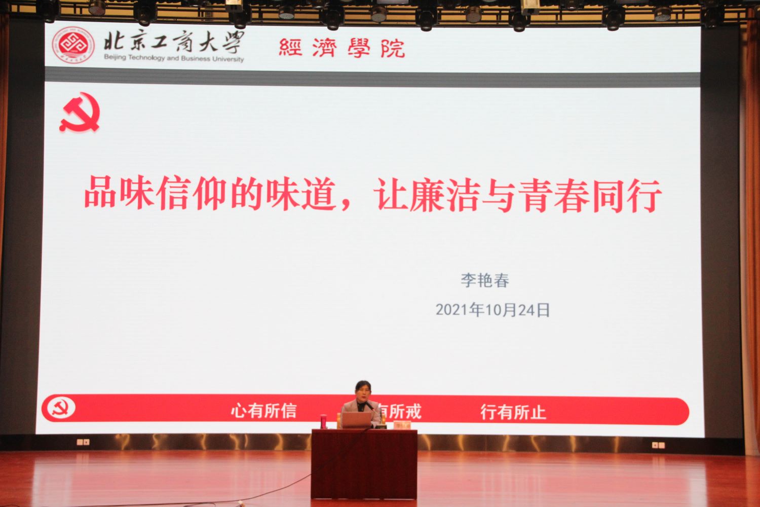 開班典禮后,李艷春以《品味信仰的味道,讓廉潔與青春同行》為題為培訓班學員做第一堂理論專題講座。她從把握信仰的內涵,堅定理想信念;品味信仰的味道,不忘初心使命;找準信仰的差距,堅守廉潔自律;踐行信仰的要求,始終對黨忠誠等四個方面出發,圍繞信仰、廉潔與青春三個關鍵詞,結合“黨史學習”、“我為群眾辦實事”和“四反兩治”工作進行深入分析,引經據典 ,深入淺出,讓學員們深受啟發。她對學員們寄予殷切希望:爭做一名心有所信,言有所戒,行有所止的新時代大學生。