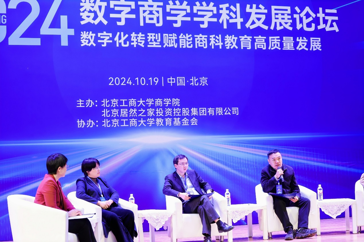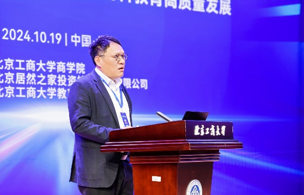 10月19日,由北京工商大學商學院、北京居然之家投資控股集團有限公司主辦,北京工商大學教育基金會協辦的數字化轉型賦能商科教育高質量發展論壇在阜成路校區舉辦。本次論壇匯聚了兄弟高校專家學者、行業專家、期刊主編、校友及企業代表,共同探討數字商科學科建設與人才培養。論壇分為開幕式、主旨演講和圓桌論壇三個環節。會議開幕式由商學院院長何玉潤教授主持。