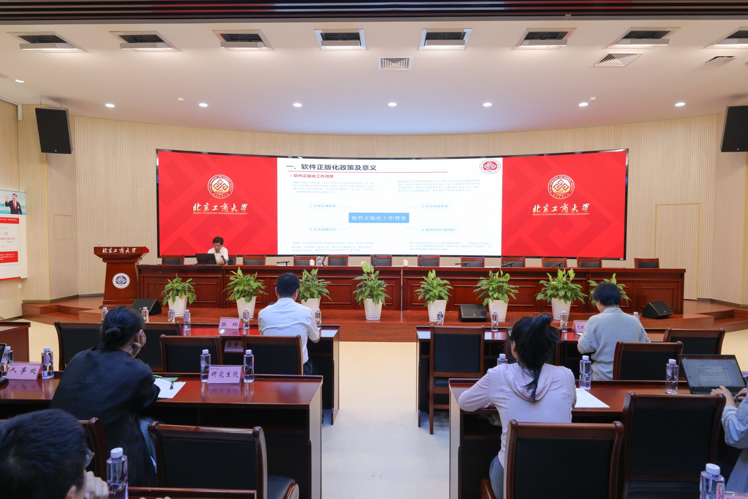 黨委常委、黨委宣傳部部長倪國華傳達了北京市軟件正版化工作動員部署會議精神,回顧了學校2024年軟件正版化工作成果,介紹了今年軟件正版化工作的重點方向和實施方案。同時,他就各二級單位需推進的工作、自查整改的時間節(jié)點以及年底的檢查考核進行了詳細部署。網(wǎng)絡與信息化管理中心副主任侯堃進行軟件正版化工作培訓,從軟件正版化政策及意義,學校正版化軟件的構成、軟件正版化工作考核安排、正版化迎檢相關要求等方面進行了詳細介紹。