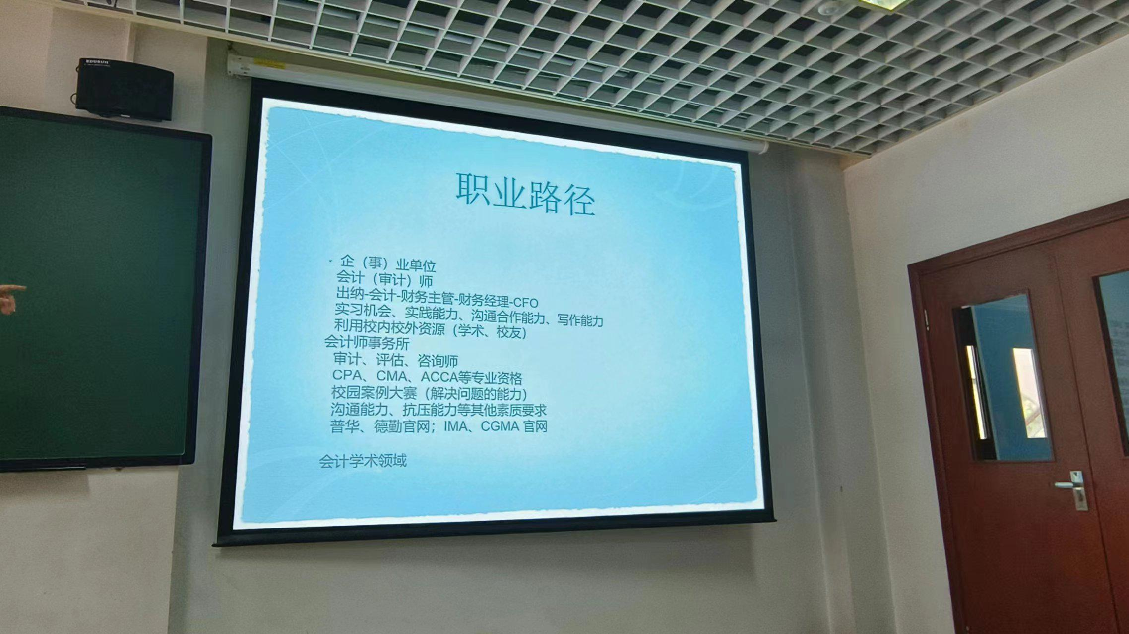 會(huì)計(jì)系楊麗梅為同學(xué)們帶來(lái)了一節(jié)生動(dòng)的職業(yè)生涯規(guī)劃講座,包括職業(yè)生涯規(guī)劃的重要性、如何進(jìn)行職業(yè)生涯規(guī)劃、會(huì)計(jì)專業(yè)職業(yè)生涯規(guī)劃三方面內(nèi)容。講座開(kāi)始,楊麗梅用互動(dòng)問(wèn)答的形式讓同學(xué)們感受到職業(yè)規(guī)劃的重要性,并按照自我探索—環(huán)境探索—決策—行動(dòng)—評(píng)估的發(fā)展過(guò)程幫助同學(xué)們梳理了職業(yè)生涯規(guī)劃的步驟。講座最后,楊麗梅立足行業(yè)大環(huán)境,分析了不同職業(yè)方向的利與弊,讓同學(xué)們對(duì)會(huì)計(jì)專業(yè)今后可選擇的就業(yè)方向有了更加深入全面的了解。