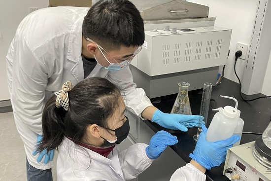 在水污染防治的課題方向中,活性炭去除水中有機物小組的同學們在丁寧和研究生的指導下熟練掌握了可見分光光度計測量水中有機物濃度的方法和流程。通過對比粉末活性炭與顆?;钚蕴刻幚砬昂笏奈舛?,同學們直觀和量化地感受到了活性炭去除水中有機物的能力。水樣中溶解氧含量的測定的同學采用碘量法對自來水和礦泉水中的溶解氧進行了測定,從溶液的配制到顯色滴定觀察的每一步,同學們都非常認真地完成,最終觀察到了完美的顯色反應。通過本次動手操作,同學們不僅深入認識到了水體中溶解氧的意義與作用,還將理論與生活中的實際現象進行了緊密的聯系。