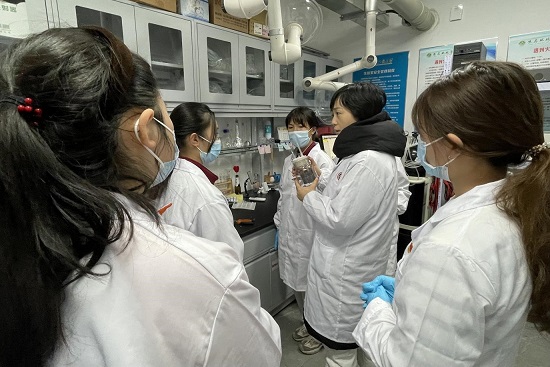 在環境與食品安全的課題方向中,復合抗菌膜的制備小組得益于前期對膜制備方法較為充分的理論學習,同學們順利地制備出了一系列抗菌膜,實踐能力得到了進一步提升。同學們都非常積極地展示自己制備的抗菌膜,并且積極與老師分享在實驗過程中的新發現。通過本次實驗,同學們進一步認識了抗菌膜在控制食源性致病菌中的作用。環境友好型食品保鮮膜的制備小組的同學在姜善學老師和研究生的指導下使用PLA和PBAT制備出了食品保鮮膜,并通過觸摸等方法比較了不同膜材料制成的膜的柔韌性的差別。這些實踐操作不僅激發了同學們對科技創新的興趣,還引發了同學們對實際生活中塑料污染問題的思考。