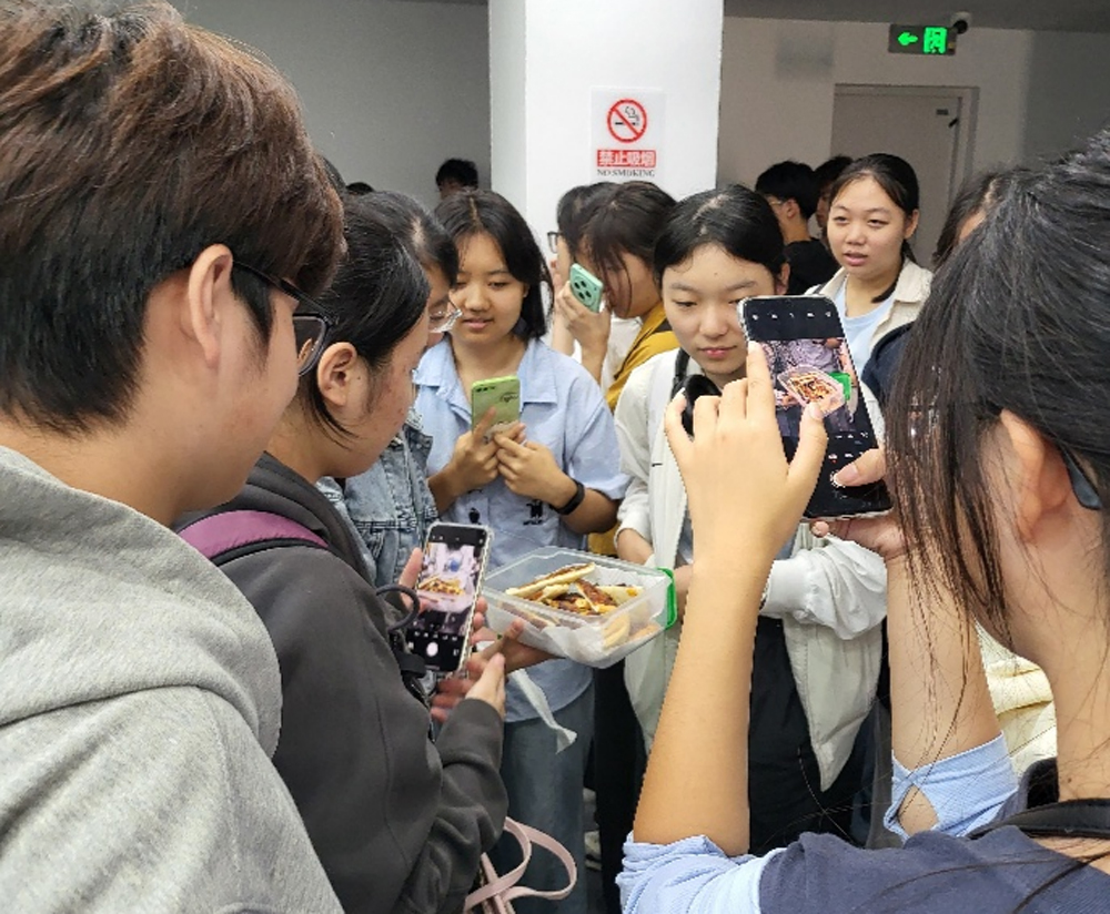 在阜成路校區,外教Timothy帶領同學們開啟了一場“舌尖上的世界之旅”。他首先通過圖片引導大家認識各國特色街頭小吃,并學習相關英文表達。活動中,同學們踴躍分享了自己心中的中國Top5小吃,展現了豐富的地域飲食文化。隨后,Timothy老師帶來了意大利、南非、法國、英國等地的特色食物供學生品嘗,并鼓勵大家用英語描述每種食物的獨特口感。不同風味的碰撞讓同學們既飽了口福,又鍛煉了英語表達能力,現場歡聲不斷,直呼過癮。