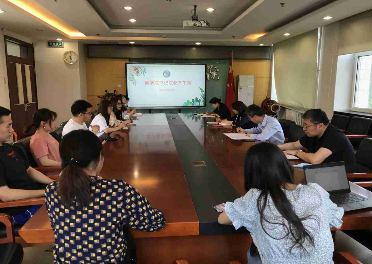 為暢通學院與學生之間的交流溝通,著力解決學生的“急難愁盼”問題,商學院于5月24日首次開展書記院長下午茶活動。學院黨委書記張春萍、院長毛新述、副院長孫永波、副院長張偉華、副書記張倩、研究生輔導員趙麗紅、趙杰和11名研究生參加了此次活動。活動由張倩主持。