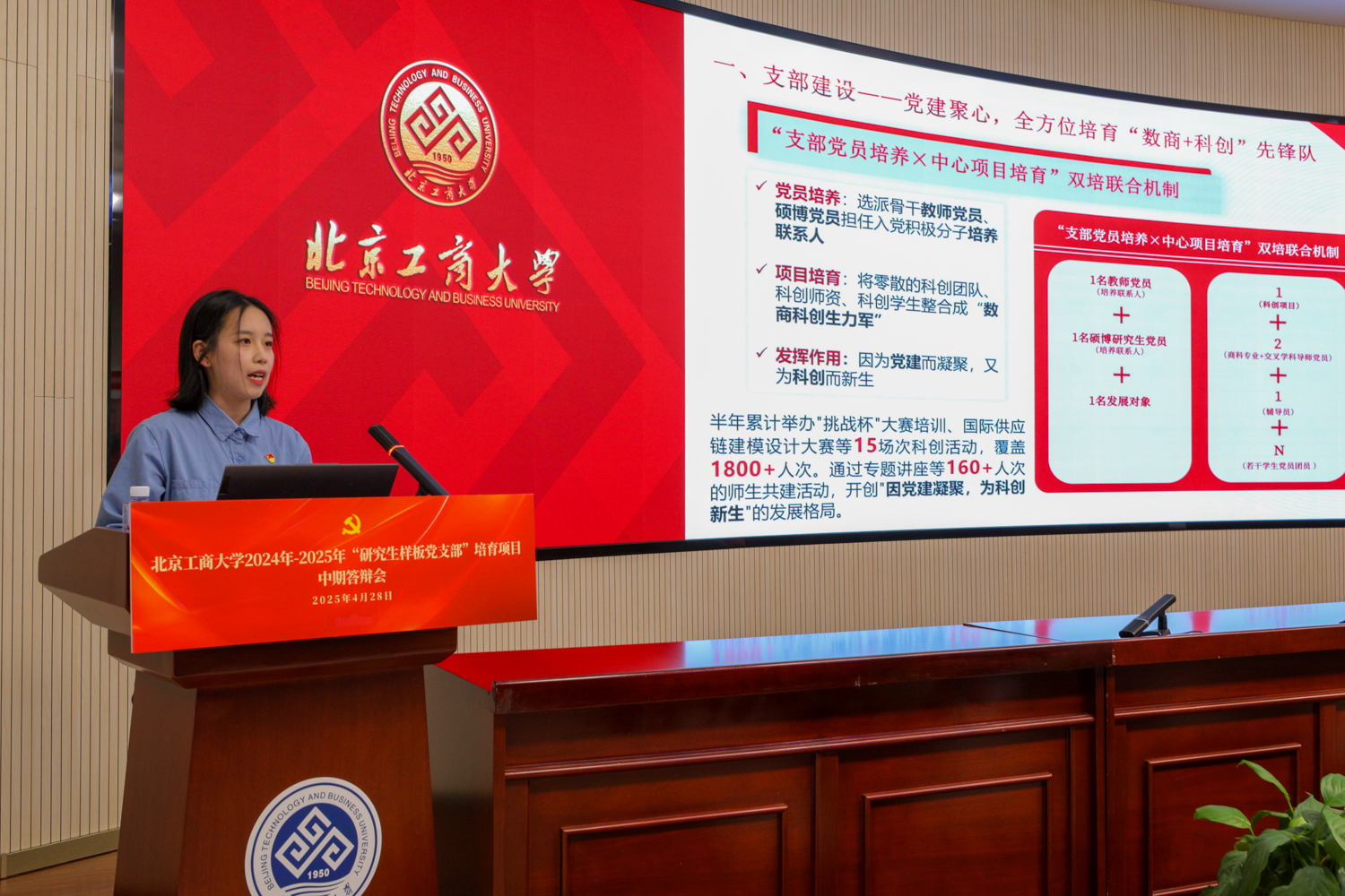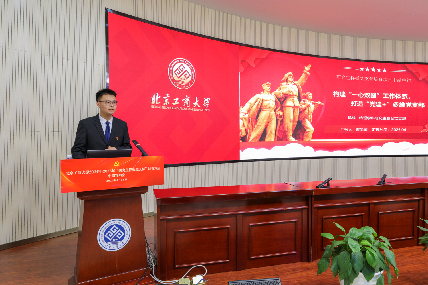 為落實全國教育大會精神、扎實推進我校研究生黨建工作高質量發展,做好“研究生樣板黨支部”培育工作,4月28日下午,學校在良鄉校區舉行北京工商大學2024-2025年“研究生樣板黨支部”培育項目中期答辯會。學校黨委副書記李中奇出席答辯會并講話。機關黨委、黨委組織部、黨委研究生工作部、各學院黨委書記、黨委副書記、副院長、研究生黨支部書記代表等120余人參會。黨委研究生工作部部長郭新愿主持會議。