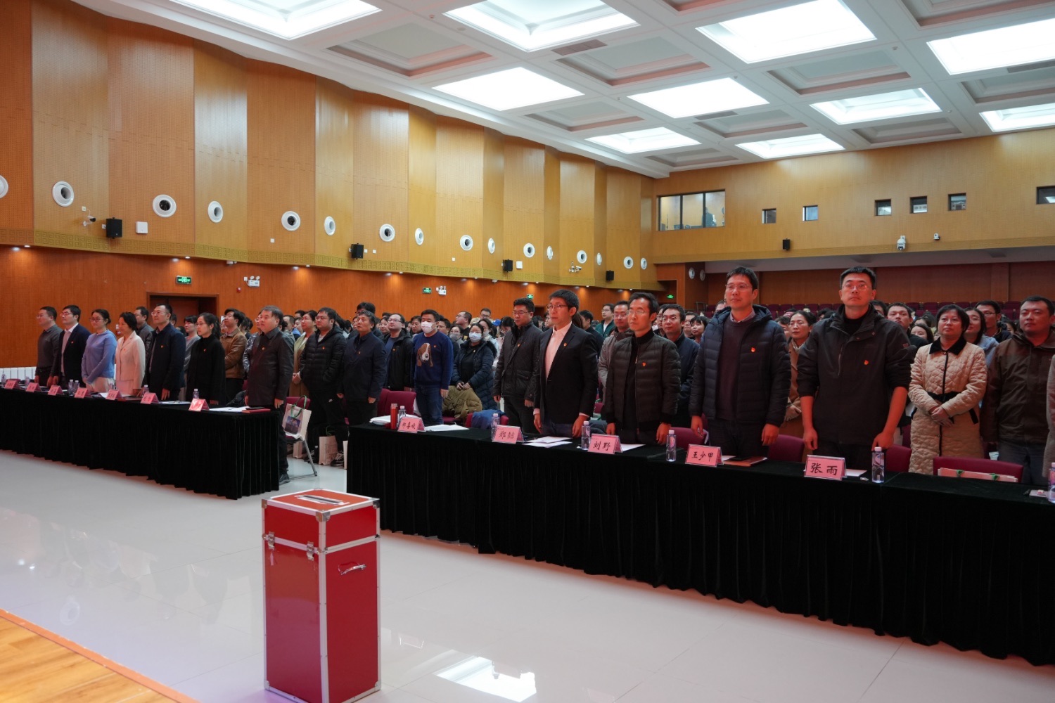 大會在莊嚴的國歌聲中拉開帷幕,全體黨員起立唱響國歌。