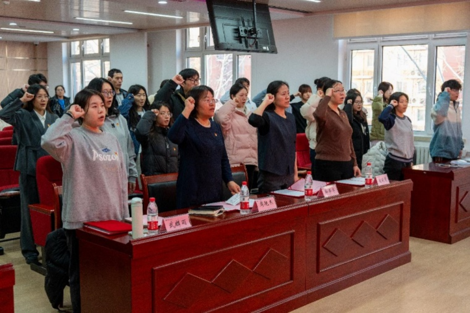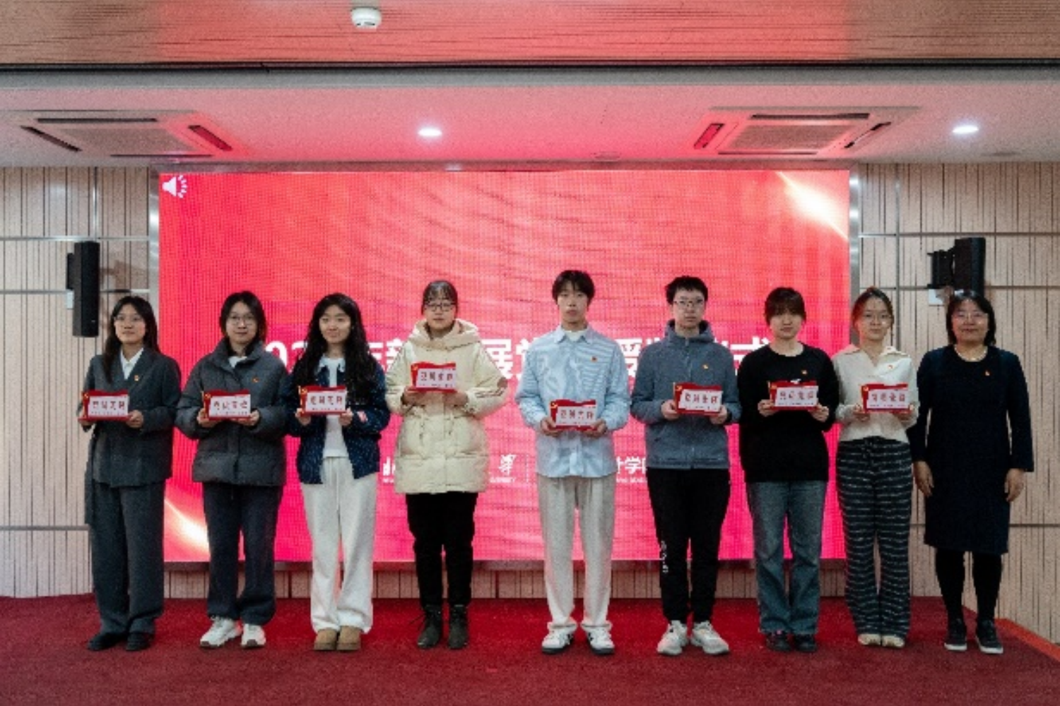 12月20日,數學與統計學院舉行了2024年新發展黨員入黨宣誓暨授牌儀式。學院黨委書記周艷杰、學院黨委副書記畢平平、組織員寇明雯、正式黨員代表和2024年新發展黨員參加了此次活動,儀式由組織員寇明雯主持。