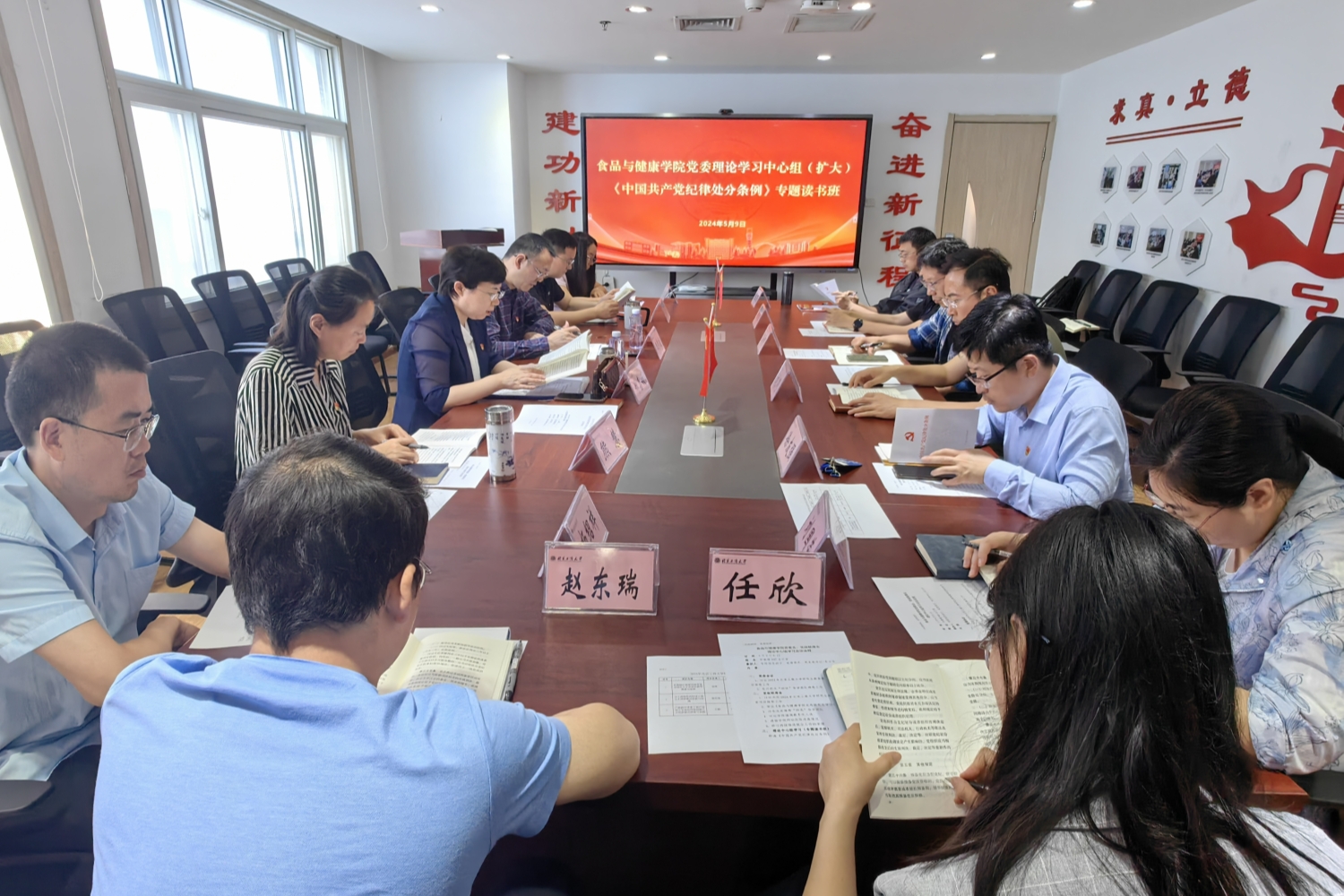 食品與健康學(xué)院黨委把學(xué)習(xí)貫徹新修訂的《中國共產(chǎn)黨紀(jì)律處分條例》作為當(dāng)前一項重要政治任務(wù)。為進(jìn)一步深化黨員干部對《條例》的理解運(yùn)用,5月9日,學(xué)院黨委理論學(xué)習(xí)中心組(擴(kuò)大)開展黨紀(jì)學(xué)習(xí)教育專題讀書學(xué)習(xí),學(xué)院領(lǐng)導(dǎo)班子、黨委委員、黨支部書記及系主任參加,學(xué)院黨委書記鄭喜姣主持。