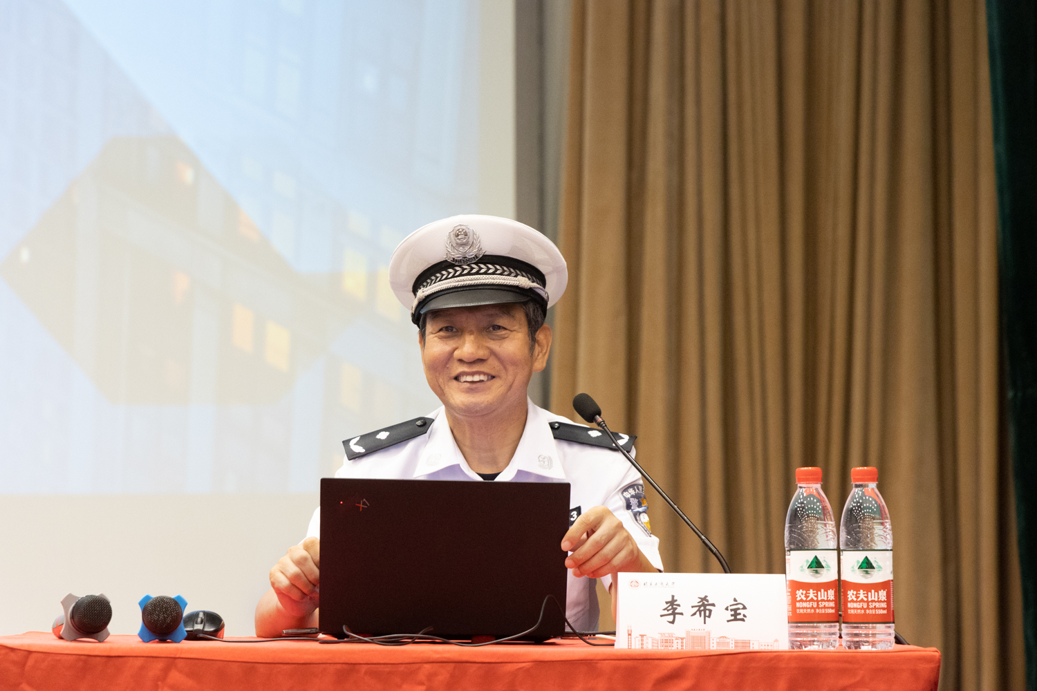 北京市海淀區高等院校交通安全工作部門聯席會辦公室主任李希寶警官走進我校新生集中入學教育的課堂,以真實案例為教材,闡釋交通安全事故的發生經過、深入剖析背后成因,從中提煉經驗教訓,揭示交通事故的嚴重危害性。李警官從道德責任與生命價值視角詮釋交通安全的重要性,引導學生樹立安全意識。