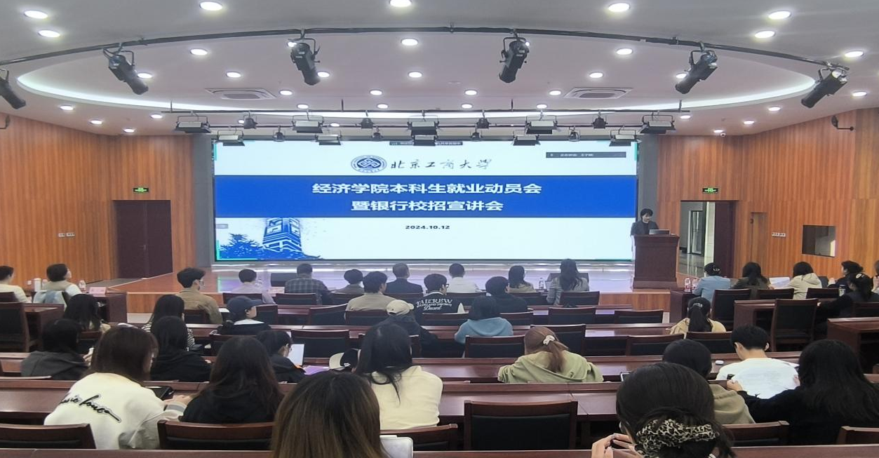 為全面貫徹落實黨中央、國務院關于高校畢業生就業工作的決策部署,統籌推進畢業生就業指導服務,促進2025屆畢業生高質量充分就業,2024年10月12日下午,經濟學院在良鄉主校區求真學堂隆重召開“‘經’彩助夢,啟航璀璨人生”為主題的本科生就業動員會暨銀行校招宣講會。
