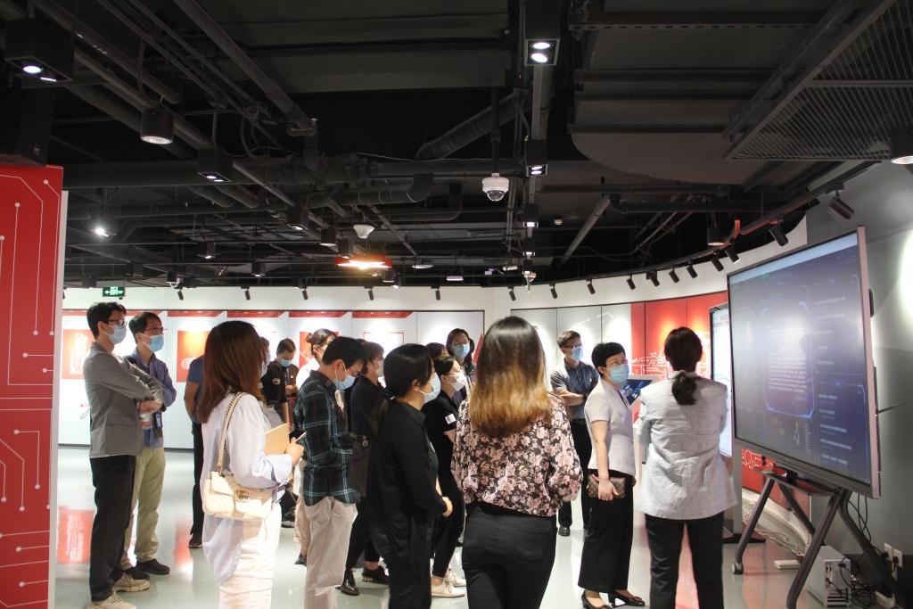 5月19日,在機關黨委書記鄭喜姣的帶領下,來自機關各支部的20余名黨員來到北大科技園總部園區,感受人民網智慧黨建體驗中心帶來的一堂別開生面的黨史教育課。