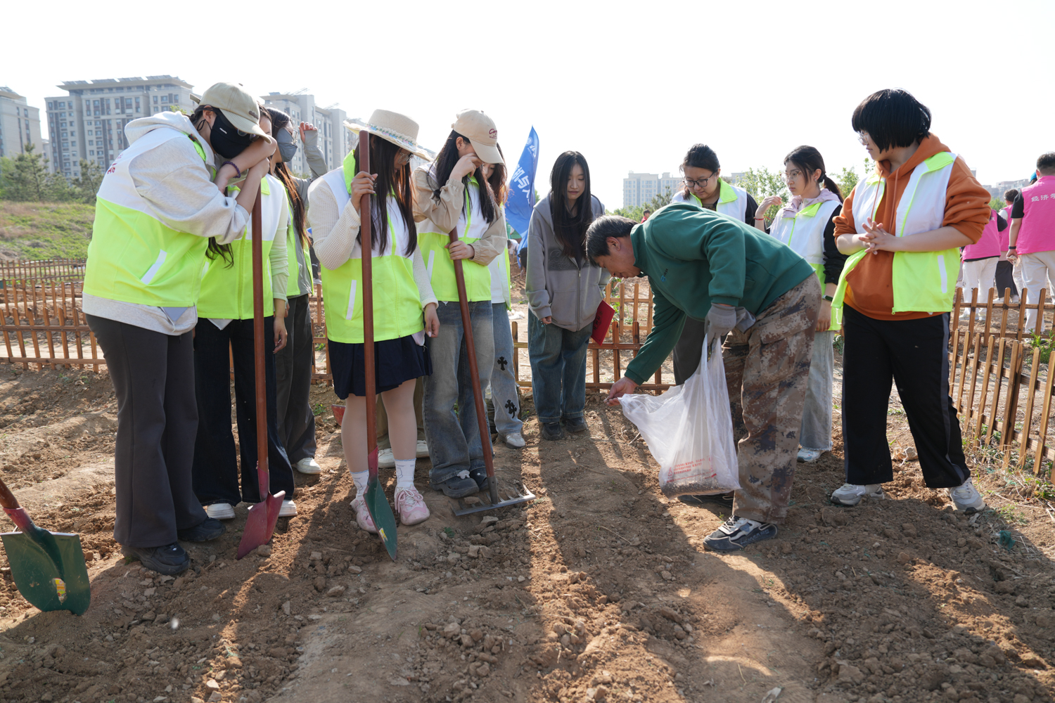 開耕儀式后,在園地實踐老師的帶領下,各學院師生師生分別前往各自園地展開勞作,手持農具翻整土地、澆水覆土,將新一年勞動的種子種在田間,也種在自己的心田。