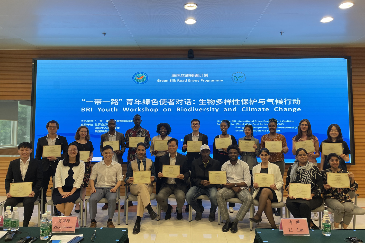 本次大會上,學校兩位青年博士生和其他中外青年學子一起,獲得“一帶一路”綠色發展國際聯盟頒發的證書,當選為“綠色使者”。各國青年學子們承諾,將積極投身于生物多樣性保護及氣候變化應對行動中,從自身做起,在科學研究、知識傳播、社會生活等各個領域積極履行青年的責任與擔當,凝聚共識,協同行動,為生物多樣性保護及氣候變化應對貢獻力量。