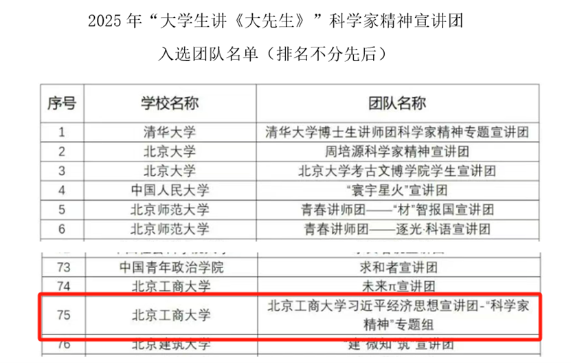 經(jīng)濟(jì)學(xué)院指導(dǎo)的宣講團(tuán)入選北京市科學(xué)技術(shù)協(xié)會(huì)“大學(xué)生講《大先生》”科學(xué)家精神宣講團(tuán),聚焦王乃彥、葛昌純等九位“大先生”,深入挖掘科學(xué)家精益求精的治學(xué)精神、矢志報(bào)國的奉獻(xiàn)品格和勤儉樸素的作風(fēng)底色,將科學(xué)家精神具象化、時(shí)代化,以榜樣力量引領(lǐng)作風(fēng)建設(shè)走深走實(shí)。