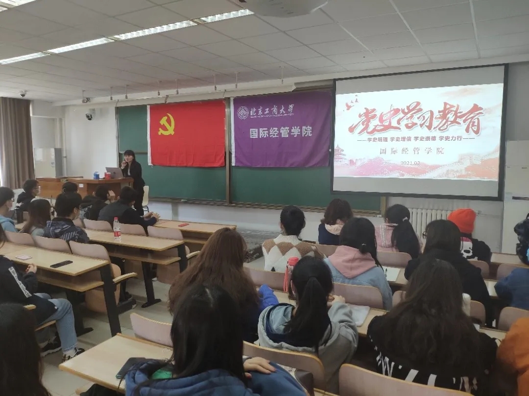 3月,國(guó)際經(jīng)管學(xué)院召開(kāi)本科生黨史學(xué)習(xí)教育動(dòng)員大會(huì),要求全體學(xué)生黨員深入學(xué)習(xí)領(lǐng)會(huì)習(xí)近平總書記在黨史學(xué)習(xí)教育動(dòng)員大會(huì)上的重要講話精神,認(rèn)真完成學(xué)院黨史學(xué)習(xí)教育各項(xiàng)安排,確保黨史學(xué)習(xí)教育取得實(shí)效,從黨史學(xué)習(xí)教育中汲取信仰、智慧和力量,理論結(jié)合實(shí)踐,積極參與到黨史的學(xué)習(xí)實(shí)踐活動(dòng),發(fā)揮黨員的榜樣示范作用,以昂揚(yáng)的姿態(tài)迎接中國(guó)共產(chǎn)黨成立100周年。學(xué)生黨員通過(guò)多種形式開(kāi)展體驗(yàn)式、沉浸式、研討式學(xué)習(xí),集體學(xué)習(xí)“首都百萬(wàn)師生同上一堂黨史課”網(wǎng)絡(luò)公開(kāi)課,感悟共產(chǎn)黨百年不渝的初心使命,堅(jiān)定永遠(yuǎn)跟黨走的決心,建功立業(yè)新時(shí)代。