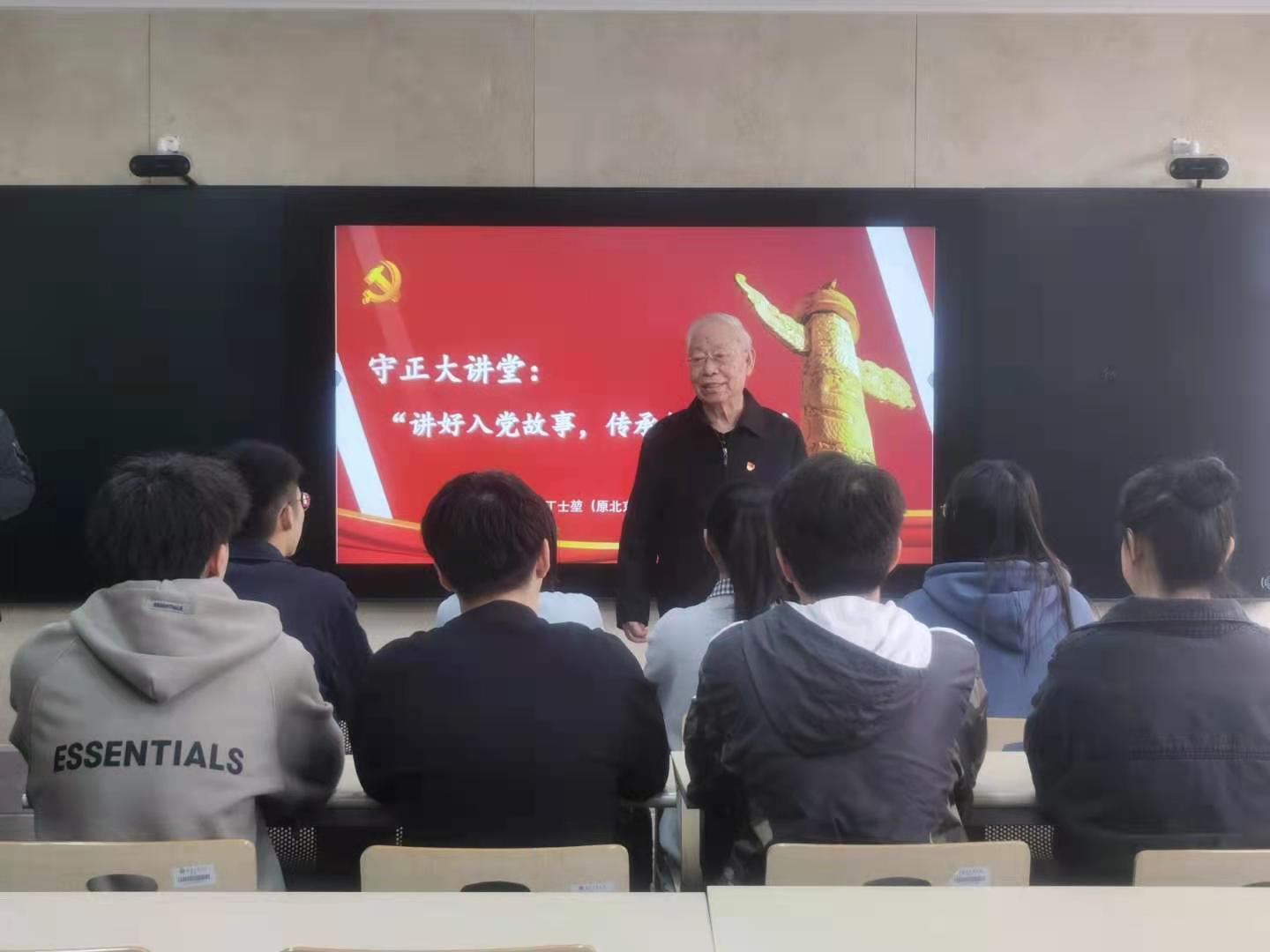 5月,學(xué)校關(guān)工委與國(guó)際經(jīng)管學(xué)院合作,以“講好入黨故事,傳承紅色基因”為主題,聯(lián)合開(kāi)展“讀懂中國(guó)”主題活動(dòng)。原北京輕工學(xué)院黨委副書記丁士堃教授為國(guó)際經(jīng)管學(xué)院的學(xué)生黨員與入黨積極分子們上了一堂別開(kāi)生面的黨課,丁士堃教授的入黨初心和為黨奮斗的歷程深深地打動(dòng)了同學(xué)們,他鼓勵(lì)大家:“一個(gè)人只有把他的生命和時(shí)代和祖國(guó)和人民的命運(yùn)結(jié)合在一起,這樣的生命才更加有意義?!痹邗r紅的黨旗下,丁士堃教授帶領(lǐng)學(xué)生黨員們重溫入黨誓詞。