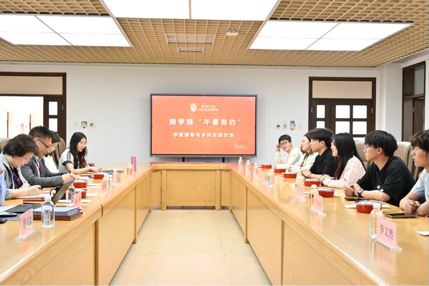 為開展深入貫徹中央八項規定精神學習教育,深入基層加強與學生們的溝通,落實立德樹人根本任務,4月23日商學院舉辦“午餐有約”——學院領導與學生面對面交流活動,傾聽學生心聲,了解學生訴求,助力學生發展,學院黨委書記樊江濤、院長何玉潤、黨委副書記張悅、副院長仇勇與來自不同年級不同專業的學生代表參加午餐會。