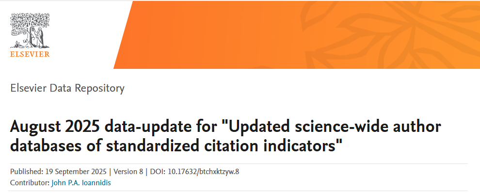 據悉,全球前2%頂尖科學家榜單基于全球科學家在Scopus數據庫中的論文引用次數、H指數、HM因子等關鍵指標,從全球近700萬名科學家中遴選出排名前2%的頂尖學者。該榜單不僅是對科學家個人科研成就的高度認可,也是評估學術機構科研實力和學科建設成效的重要參考,具有極高的透明度和權威性。