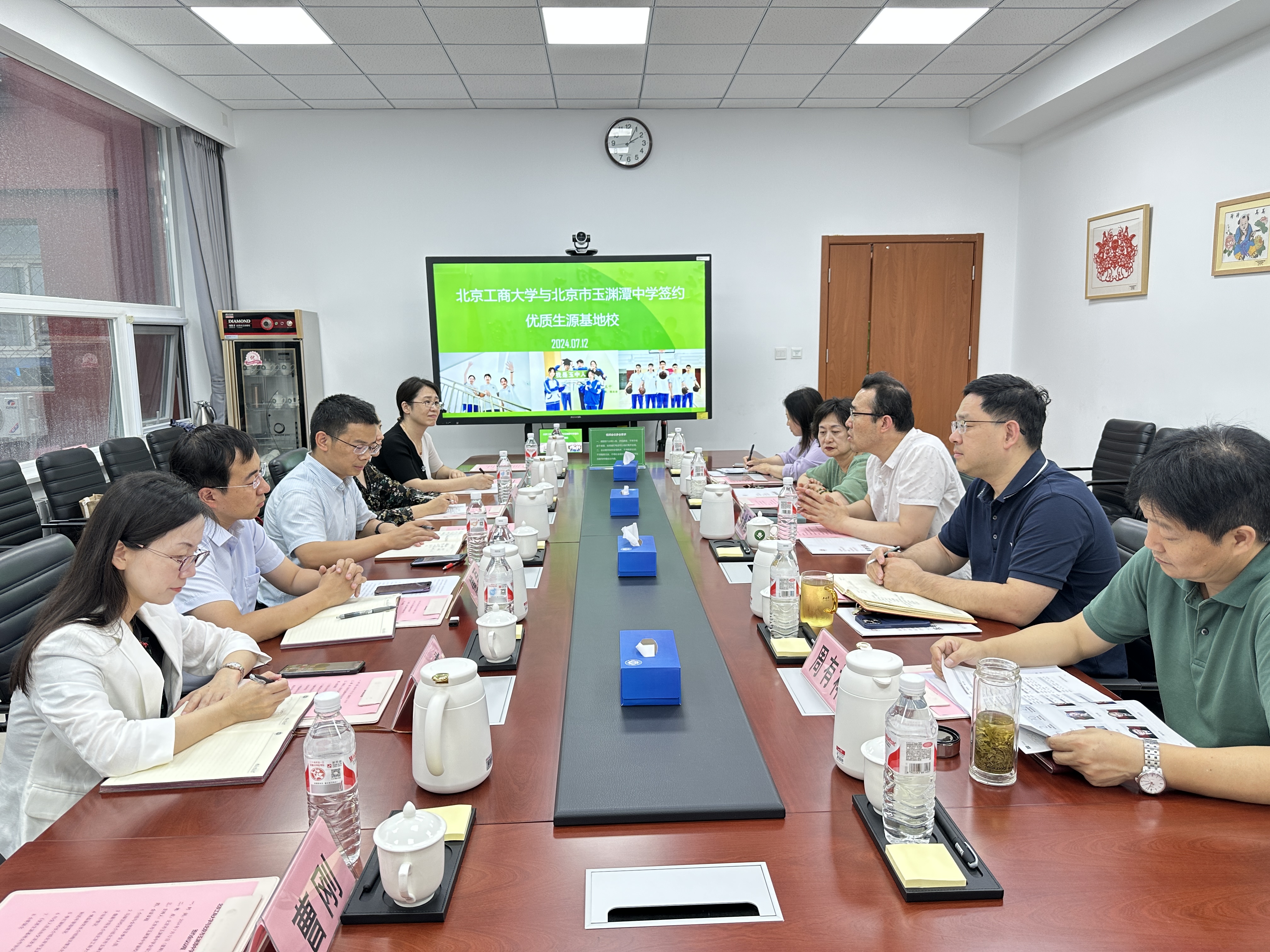 為進一步深化高等教育和基礎(chǔ)教育銜接,切實提高本科生源質(zhì)量,做好學校本科招生和人才培養(yǎng)工作,7月12日下午,經(jīng)濟學院執(zhí)行院長詹新宇帶隊赴北京市玉淵潭中學,舉行了優(yōu)質(zhì)生源基地簽約及授牌儀式。北京市玉淵潭中學執(zhí)行校長馬耀國、黨總支書記趙杰志、副校長李紅、辦公室主任李莉、生物組組長周有祥,我校招生就業(yè)處副處長傅磊,經(jīng)濟學院副院長牛曉燕、馬雪嬌,輕工科學與工程學院副院長靳玉娟,經(jīng)濟學院貿(mào)易經(jīng)濟系專業(yè)主任曹剛出席活動。