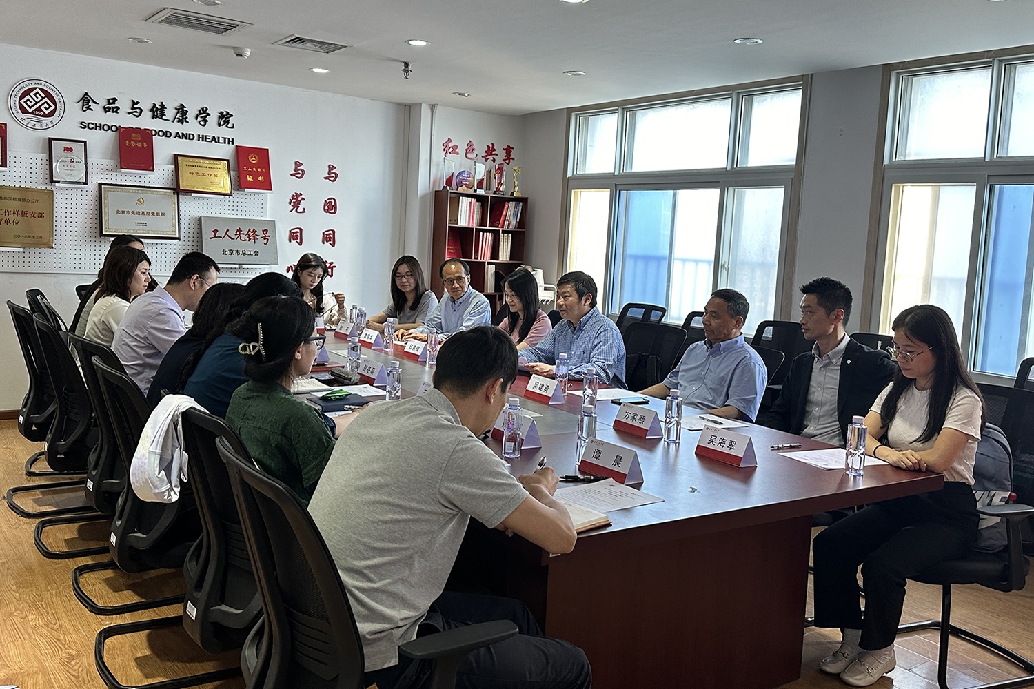 5月28日,香港理工大學理學院食品科學及營養學系主任陳聲、副主任邱家琪、教師代表方家熙等一行8人蒞臨北京工商大學食品與健康學院訪問交流。學校港澳臺辦公室主任賀冬萌、食品與健康學院院長王彥波、副院長王蓓以及系主任、教師代表在阜成路校區熱情接待了訪問團。