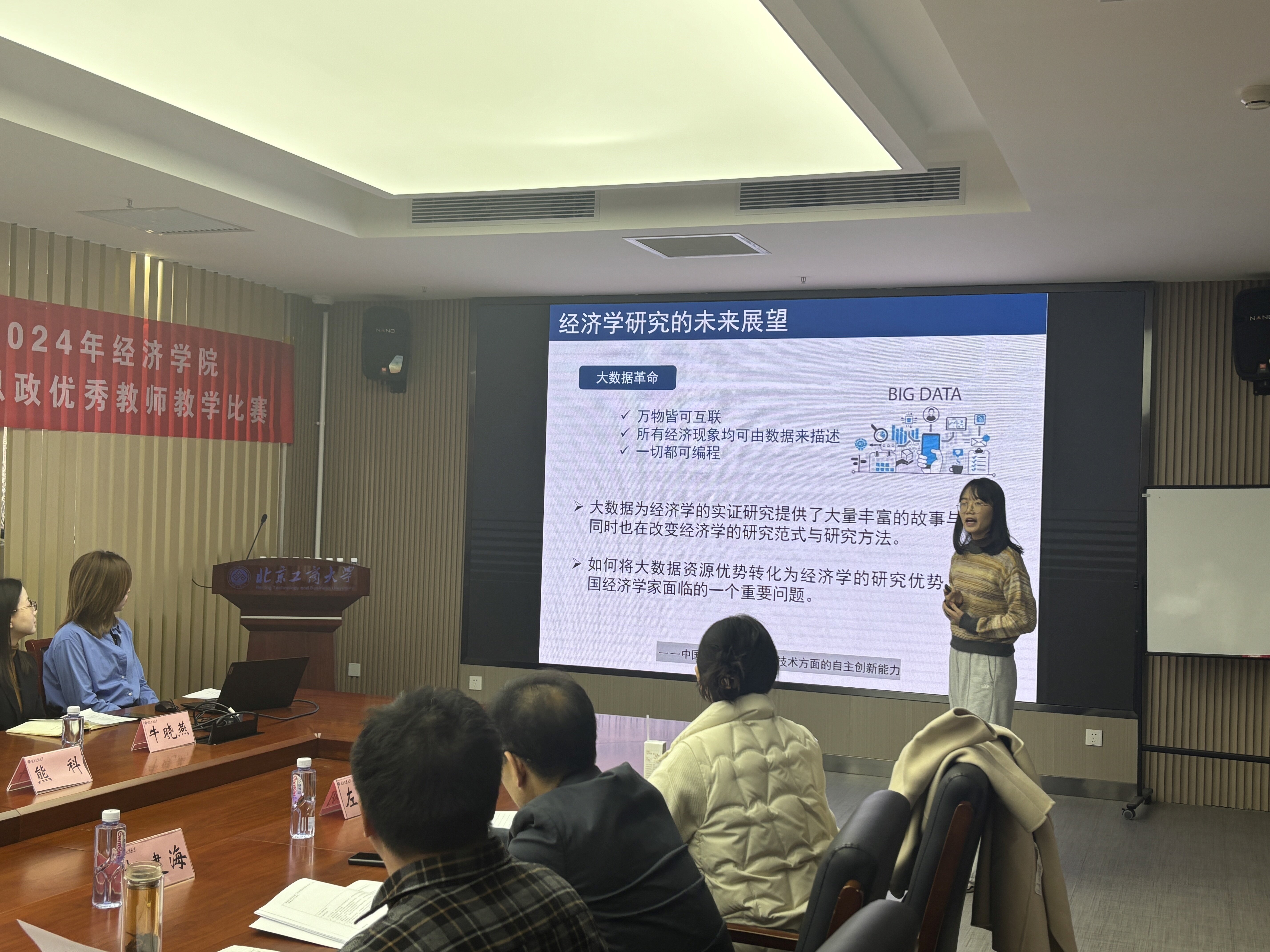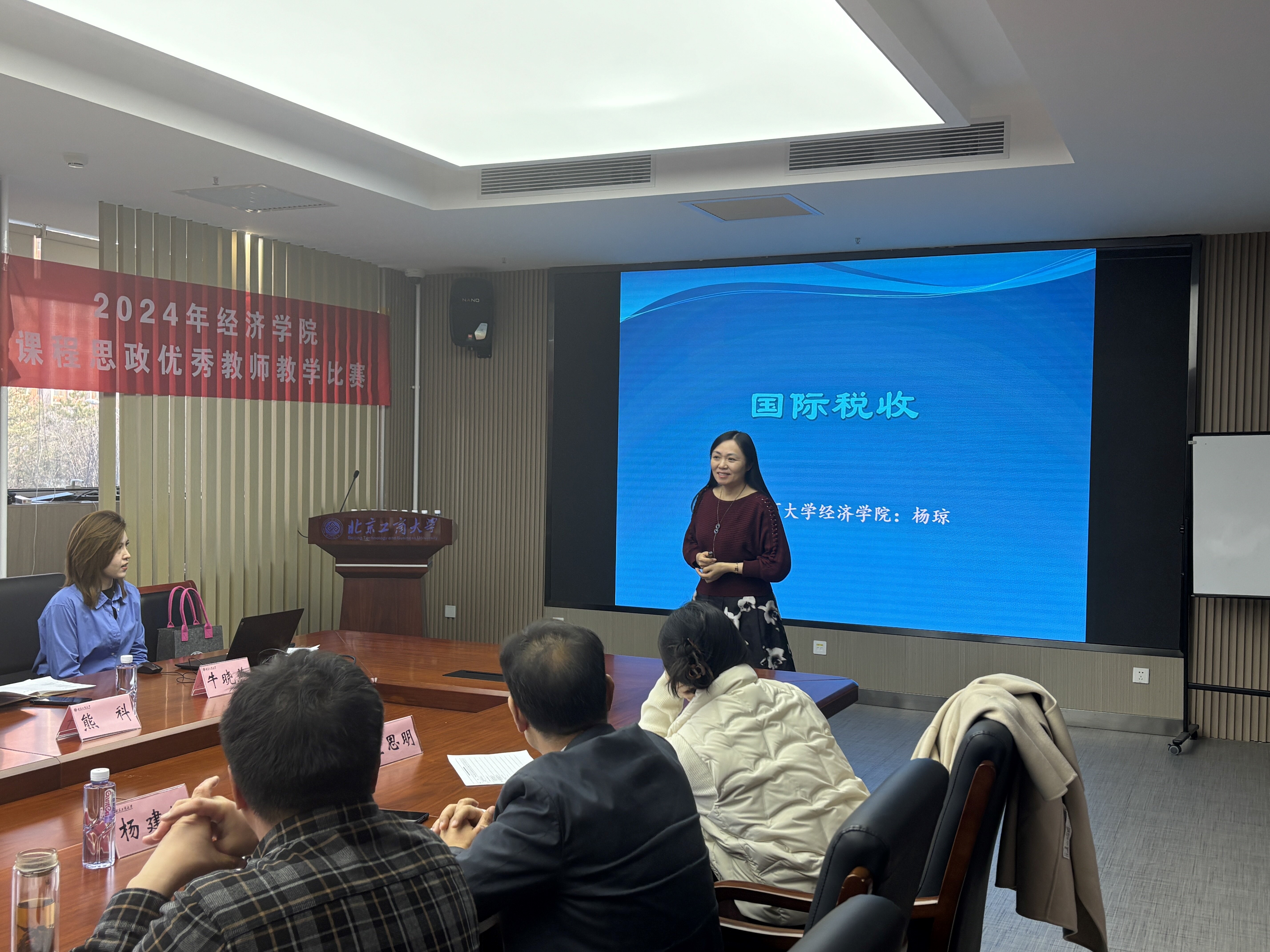 為落實立德樹人根本任務,推進學院課程思政建設,挖掘專業課程德育內涵,實現知識傳授與價值引領的有機統一。經濟學院積極響應學校號召,于12月4日上午,在良鄉校區舉辦“2024年經濟學院課程思政優秀教師教學比賽”。經濟學院黨委書記呂良、執行院長詹新宇、學校教務處副處長熊科出席比賽。副院長牛曉燕、金融系主任李飛、貿易經濟系專業主任李麗、風險管理與保險學系楊建海、國際經濟與貿易系副主任左思明擔任比賽評委。比賽由經濟學院劉倩穎主持。