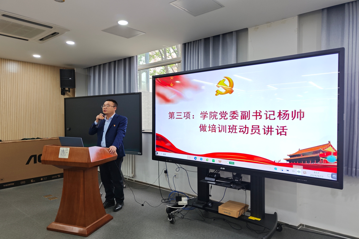 開班儀式在莊嚴的國歌聲中拉開序幕。學院黨委副書記、分黨校副校長楊帥做開班動員講話,他表示,在全面建設社會主義現代化國家新征程、向第二個百年奮斗目標進軍的關鍵時刻,舉辦此次培訓班具有特殊的重要意義。他強調,全體學員要深刻認識到學習黨的理論知識的重要性,認真學習全國“兩會”精神,深刻領會新質生產力理論的豐富內涵和核心要義,充分認識發展新質生產力的重要意義,不斷提高政治站位,強化思想認識,堅定理想信念。楊帥向學員們提出了三點要求:一是端正入黨動機,珍惜學習機會,深刻理解入黨的嚴肅性和神圣性,充分利用培訓班提供的資源,不斷提升自己的政治理論水平;二是尊師守紀,嚴格自律,以黨員的標準嚴格要求自己,自覺遵守培訓班的各項規章制度,積極參與集體活動;三是學有所成,早日入黨,通過學習深刻理解黨的二十大精神,全面系統地掌握黨的基本理論知識,將理論與實踐相結合,積極參與社會實踐活動,用實際言行體現一名入黨積極分子的素質。
