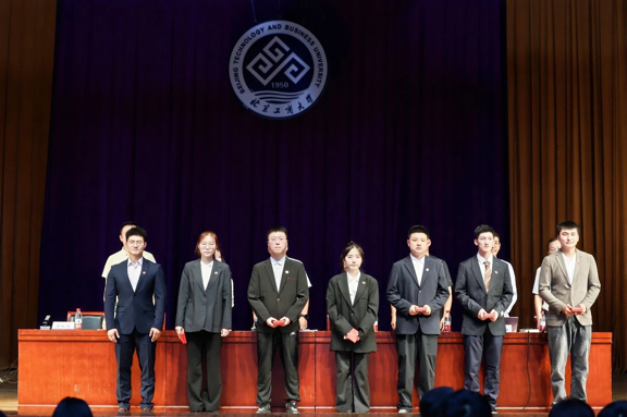 付仕倫在講話中向研究生新生表示最熱烈的歡迎和最誠摯的祝賀,他指出,面向未來,向同學們提出三點希望,一是堅定理想信念,勇擔時代重任。商學院立志于培養商業精英,希望同學們樹立遠大理想,將個人發展融入國家發展大局,用實際行動踐行“工以開物,商以富邦”的使命。二是深耕專業知識,培養創新思維。要勇于突破傳統,培養學科交叉融合、創新驅動的能力,讓學習成為一種習慣,讓創新成為一種信仰,拓寬視野,提升解決問題的能力。三是強化實踐能力,錘煉綜合素質。要積極參與社會實踐、企業實習、案例分析,將所學知識轉化為解決實際問題的能力,培養良好的溝通協作能力、領導力以及國際視野,成為復合型人才。四是珍惜同窗情誼,共創美好未來。要珍惜師生情同窗情,與商學院發展同向同行,尊重導師和諧相處,與同學相互學習,在未來的道路上創造屬于自己的輝煌篇章,讓青春在奮斗中綻放最耀眼的光芒。