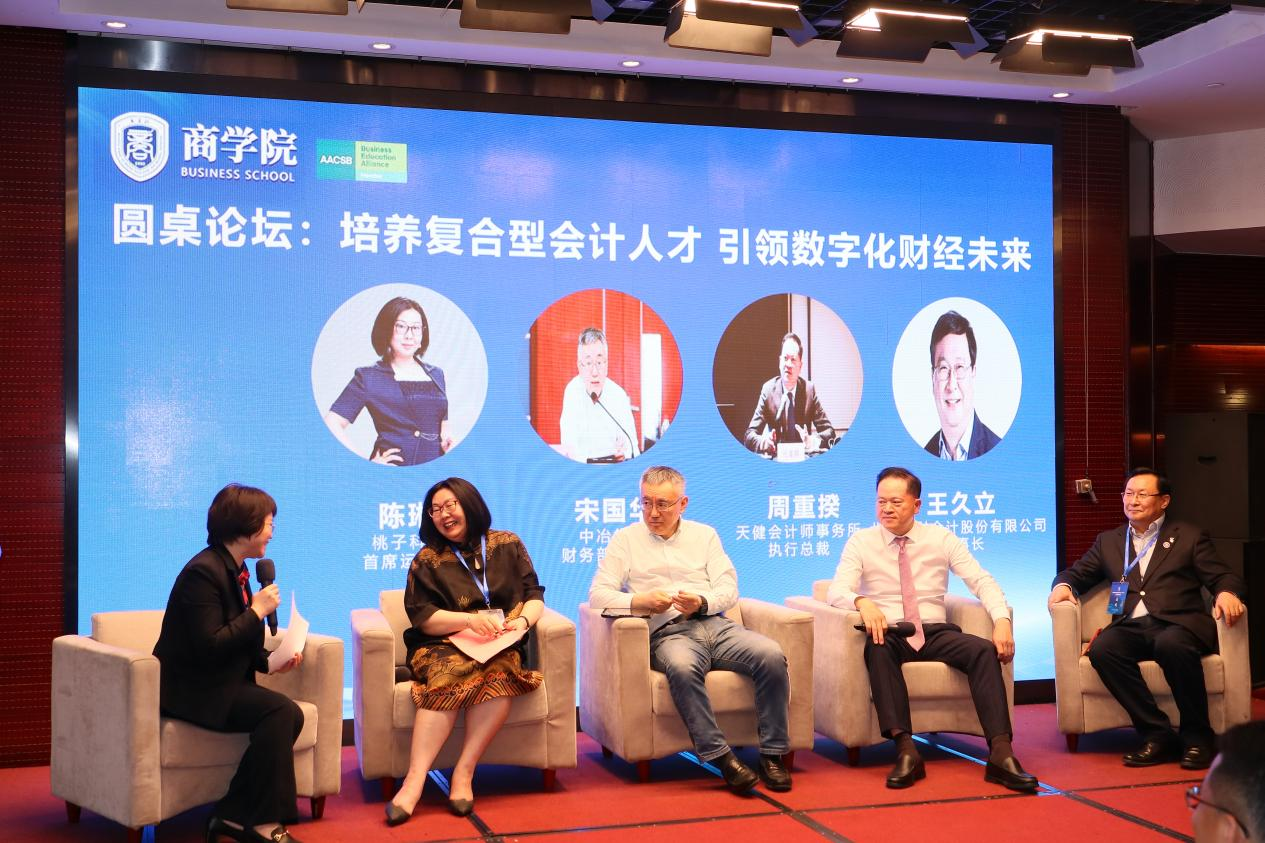 在圓桌討論環節,何玉潤與四位業界資深專家現場互動交流,對行業和企業需要什么樣的會計人才、怎樣培養優秀復合型人才等現實問題作了進一步探討。