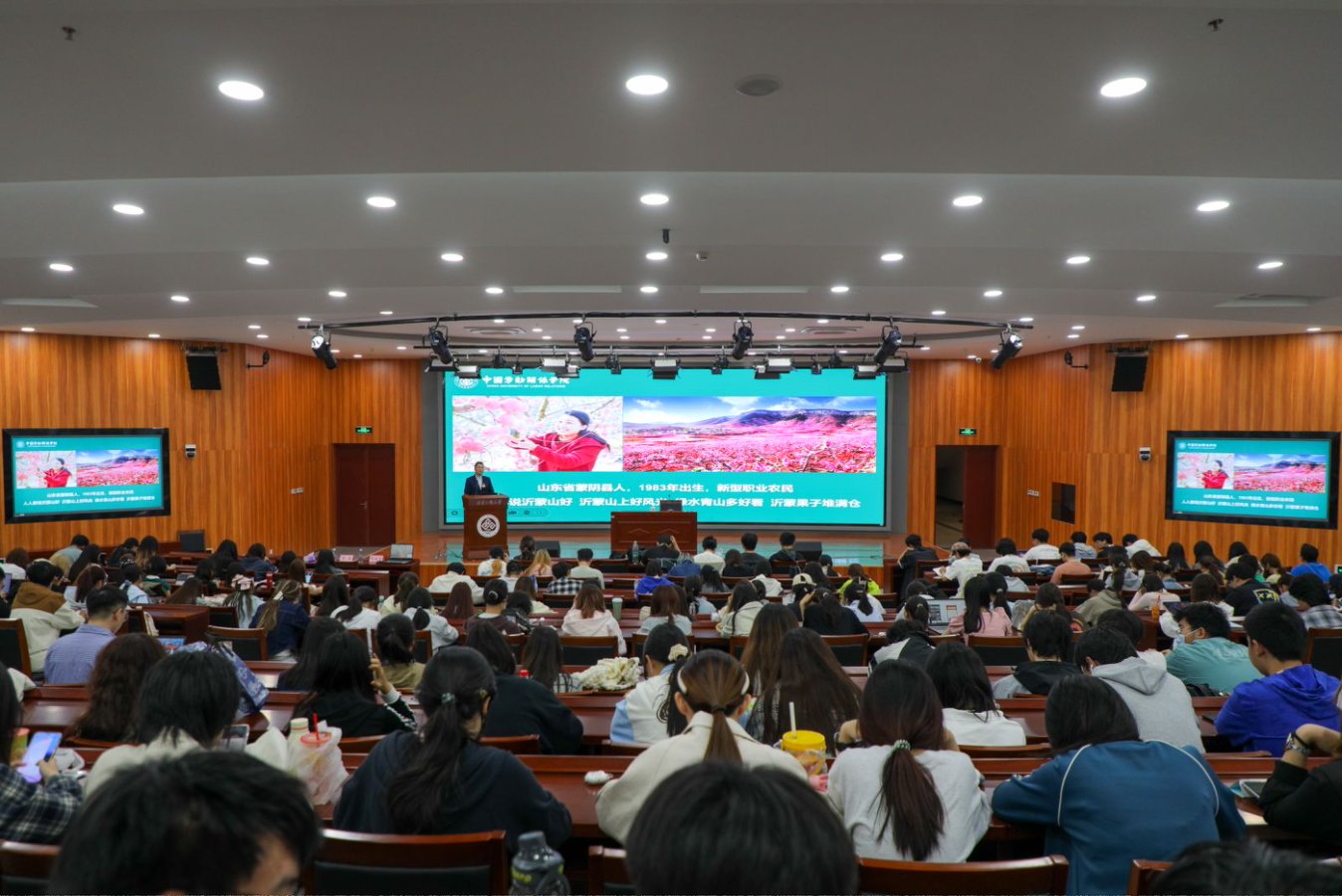 全國勞動模范、2022年冬奧會火炬手、山東省第十四屆人大代表,來自沂蒙紅色老區的牛慶花為同學們分享了自己的創業之路。從留守婦女到網店年營業額達400多萬元的新農商,她敢于嘗試,勇于堅持,致富不忘鄉恩,帶動身邊貧困群眾脫貧致富。被父老鄉親們稱為綻放在山村里的“電商玫瑰”。