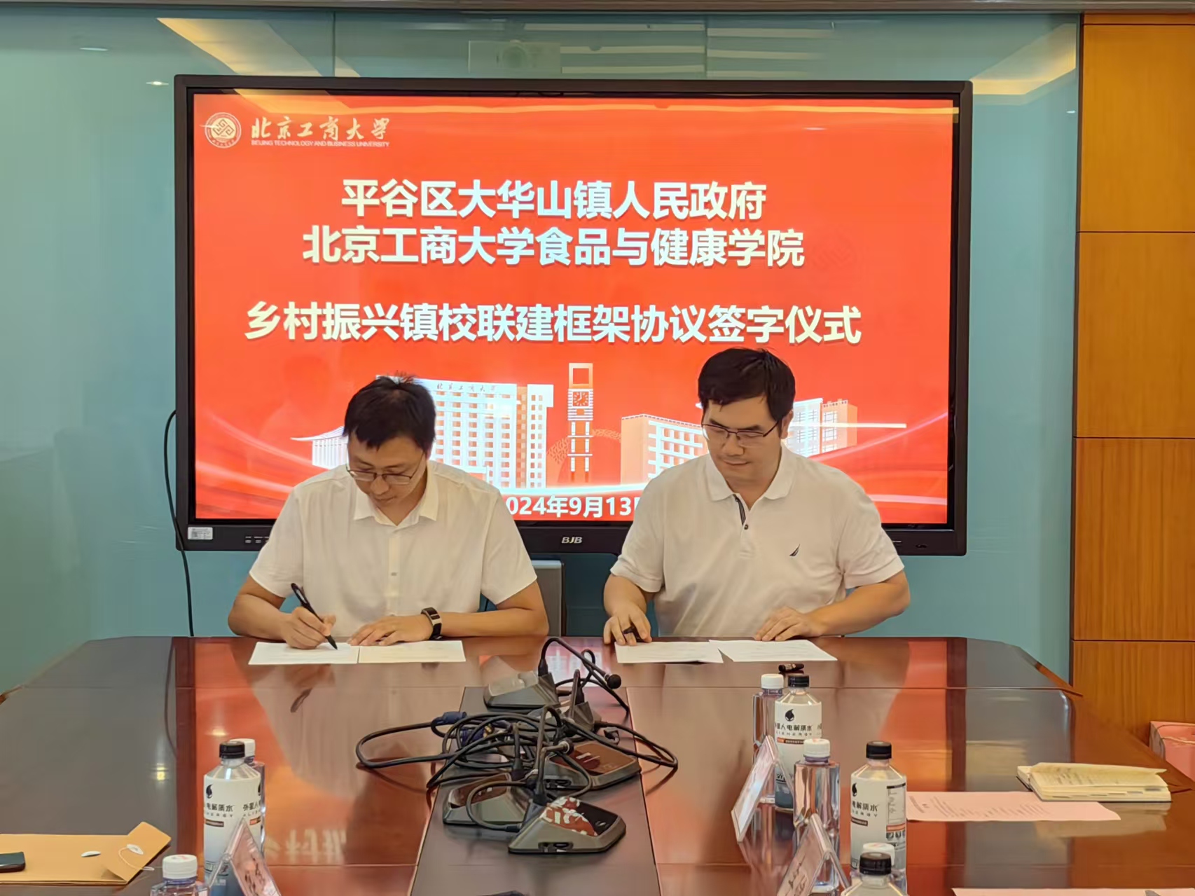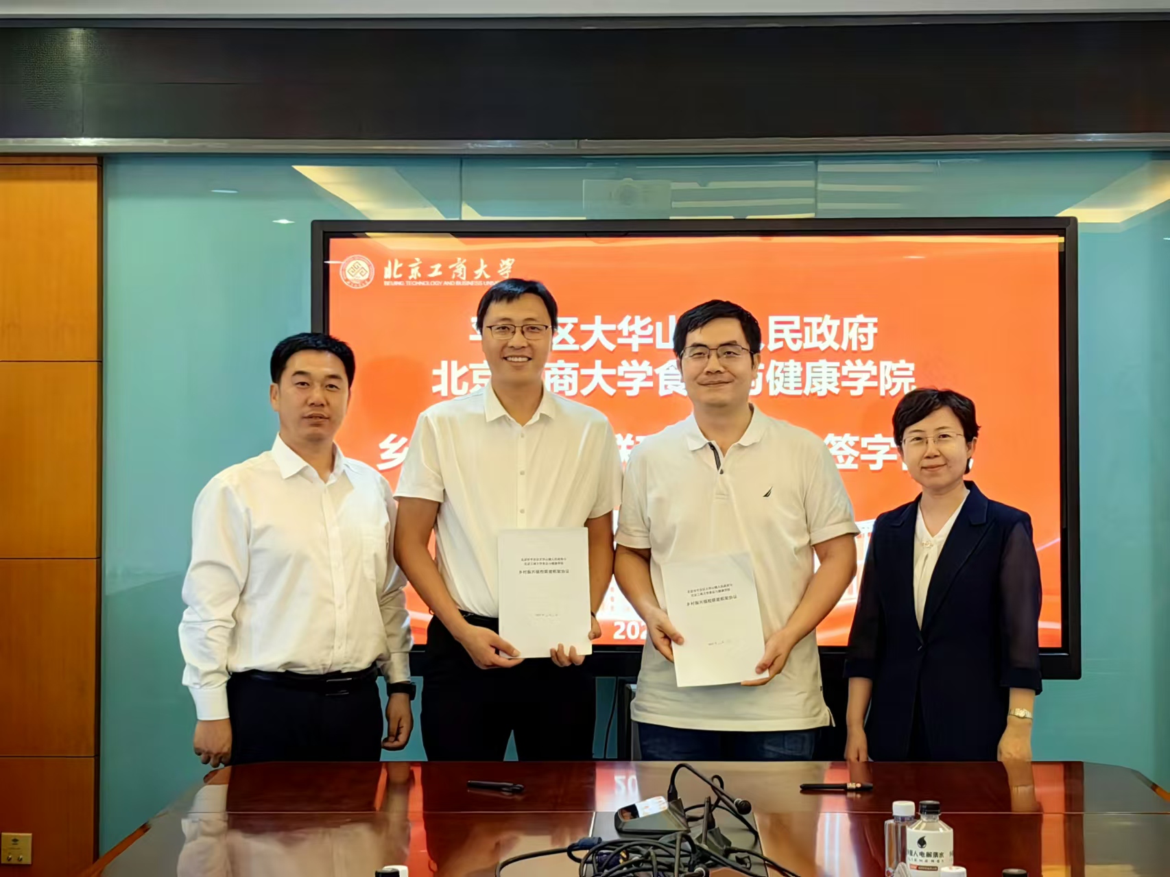 為深入學(xué)習(xí)貫徹習(xí)近平總書記重要講話精神,全面推進(jìn)鄉(xiāng)村振興戰(zhàn)略實(shí)施,9月13日,北京工商大學(xué)食品與健康學(xué)院、平谷區(qū)大華山鎮(zhèn)聯(lián)合簽訂鎮(zhèn)校聯(lián)建框架協(xié)議。大華山鎮(zhèn)鎮(zhèn)黨委書記王斌、組織部部長張建、小裕子村書記閆洪,學(xué)院黨委書記鄭喜姣、副院長李健、組織員李娜、團(tuán)委書記朱晨晨共同出席簽約儀式暨座談會。