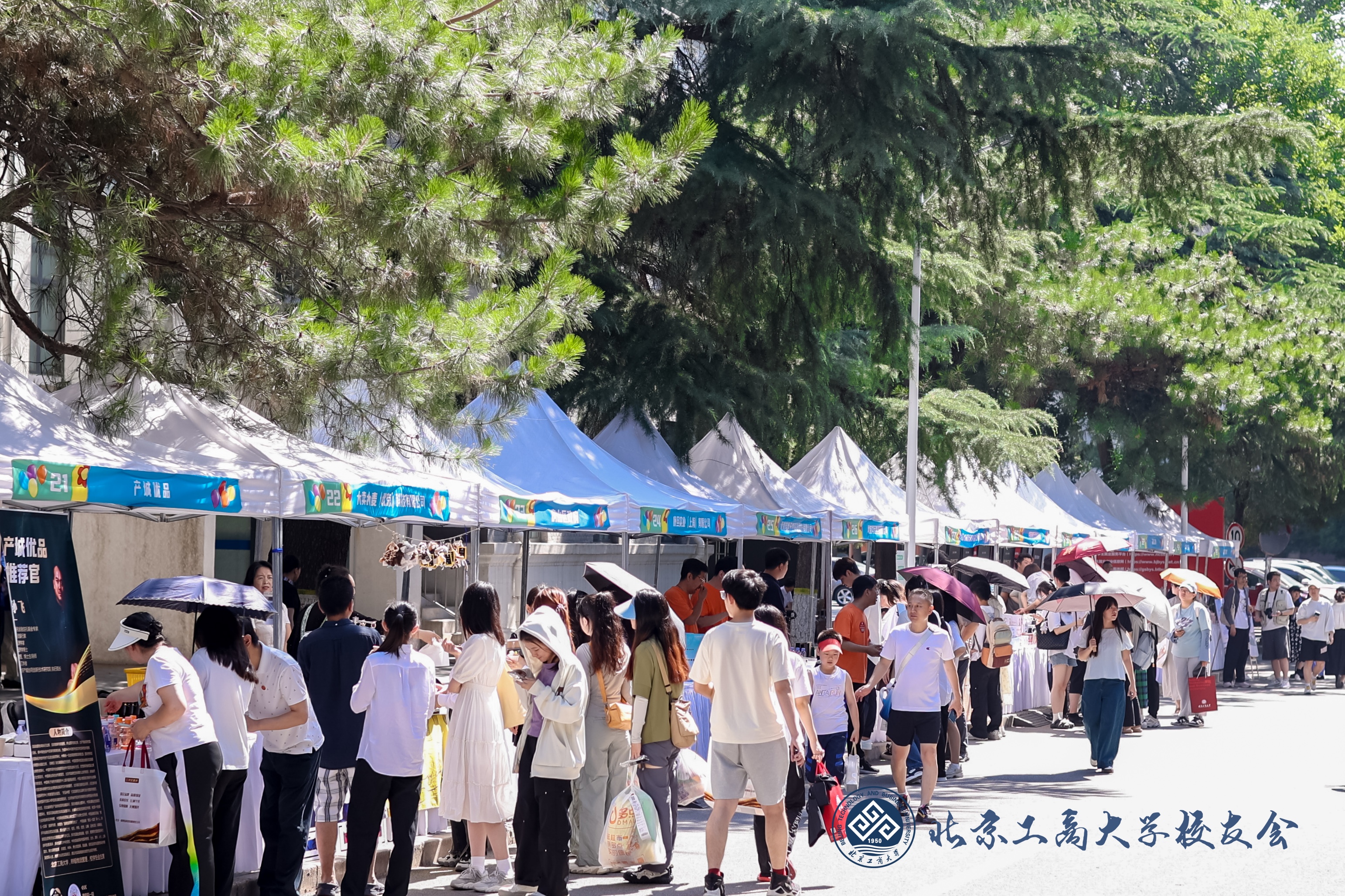 首次開設(shè)“校友市集”。現(xiàn)場有40個展位展示校友企業(yè),包括居然之家、京東方、東方淼森、京企直賣、六位仙食品等30多個企業(yè)參展。